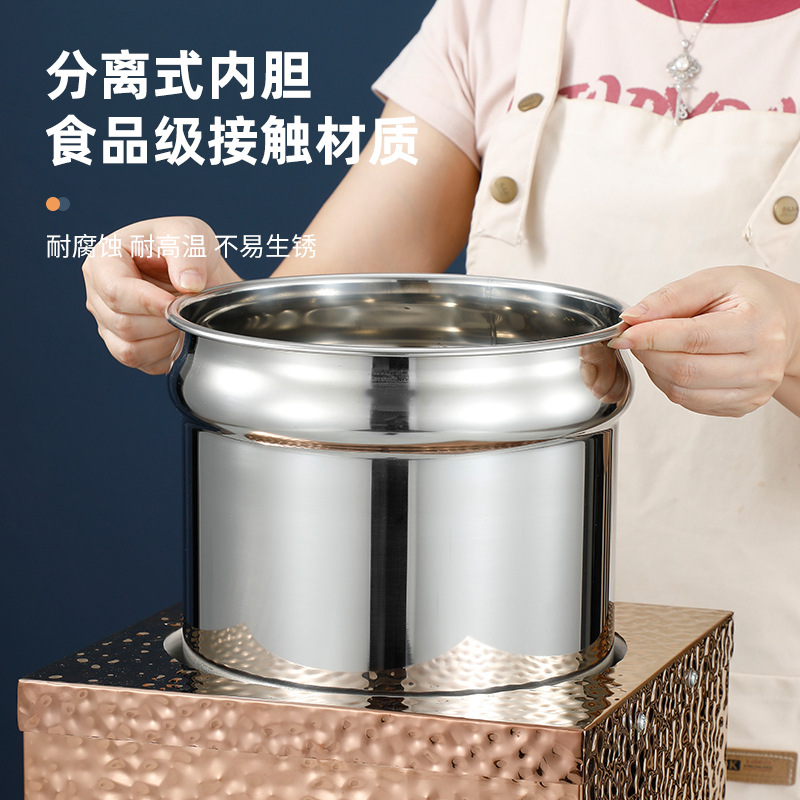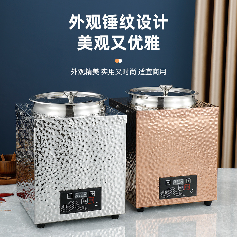 hammer pattern electronic soup heating pot commercial stainless steel buffet insulation electric heating soup pot breakfast heating porridge pot electric heating barrel 中文版