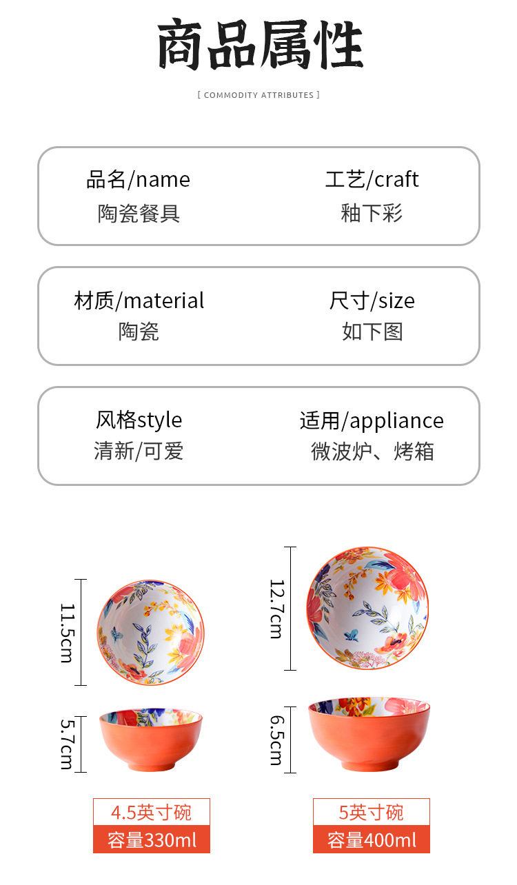 flowers-5 inches rice bowl