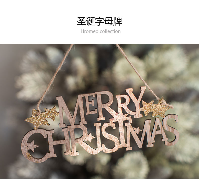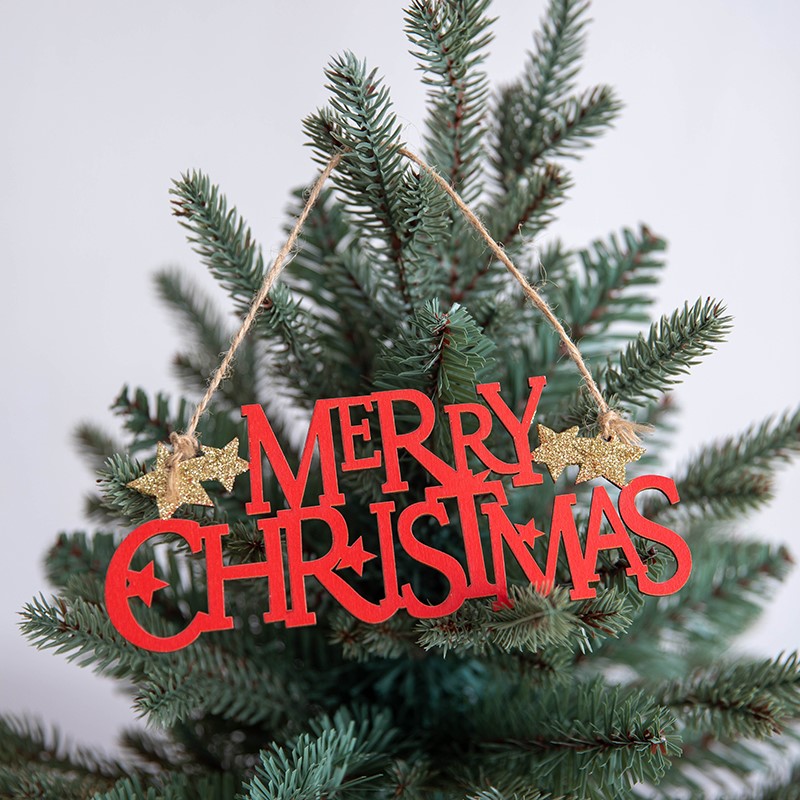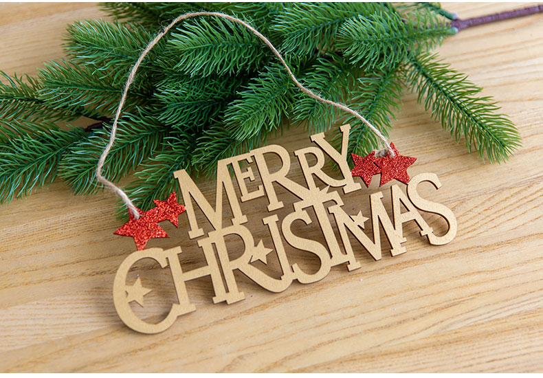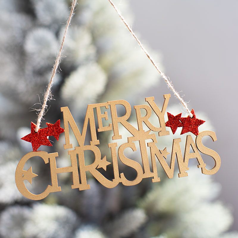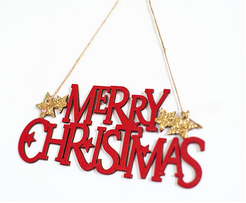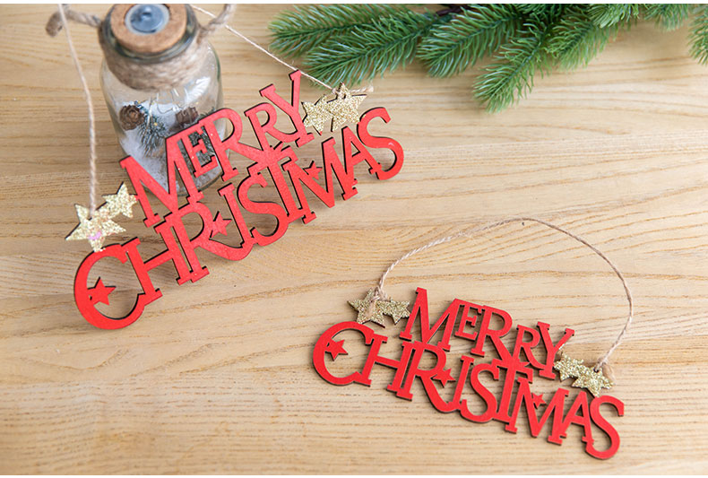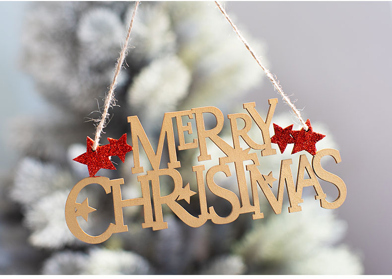 cistmas wooden english letter brand wood color golden red letter card pendant cistmas tree decoration pendant 中文版