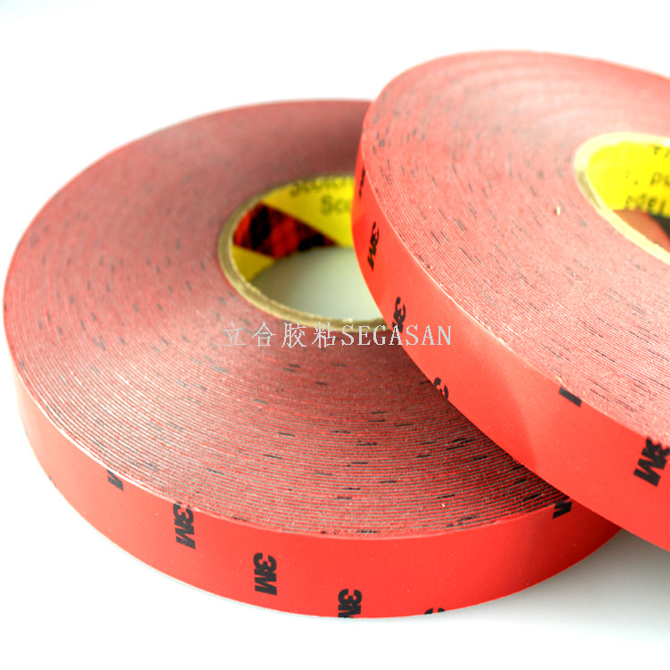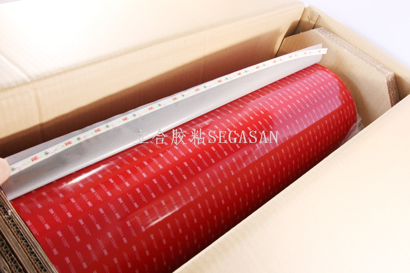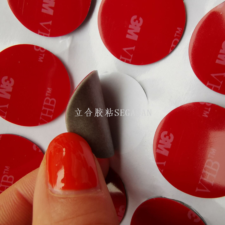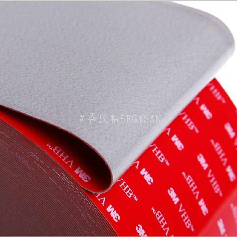 VHB超强粘性双面胶带的全丙烯酸结构,可以取代铆钉,螺丝及其他机械式固定,不仅可密封隔绝潮气及多数溶剂,更可长期抗紫外线及冷热循环,独特的泡绵可做为不错的缓冲材料。不同于机械固定之点受力,VHB胶带能够平均分散受力,使用者得以使用较轻薄的材料而无材料变形,金属疲劳等问题。VHB高贴服性胶带还具备更多的特性:服贴性高,优异的填缝效果,独特的背胶亦适用于不同表面及低温施工使用。可用于空调器、办公家具,通讯设备中的加强筋,车辆总装,建筑标志. 可按客户要求加工冲型