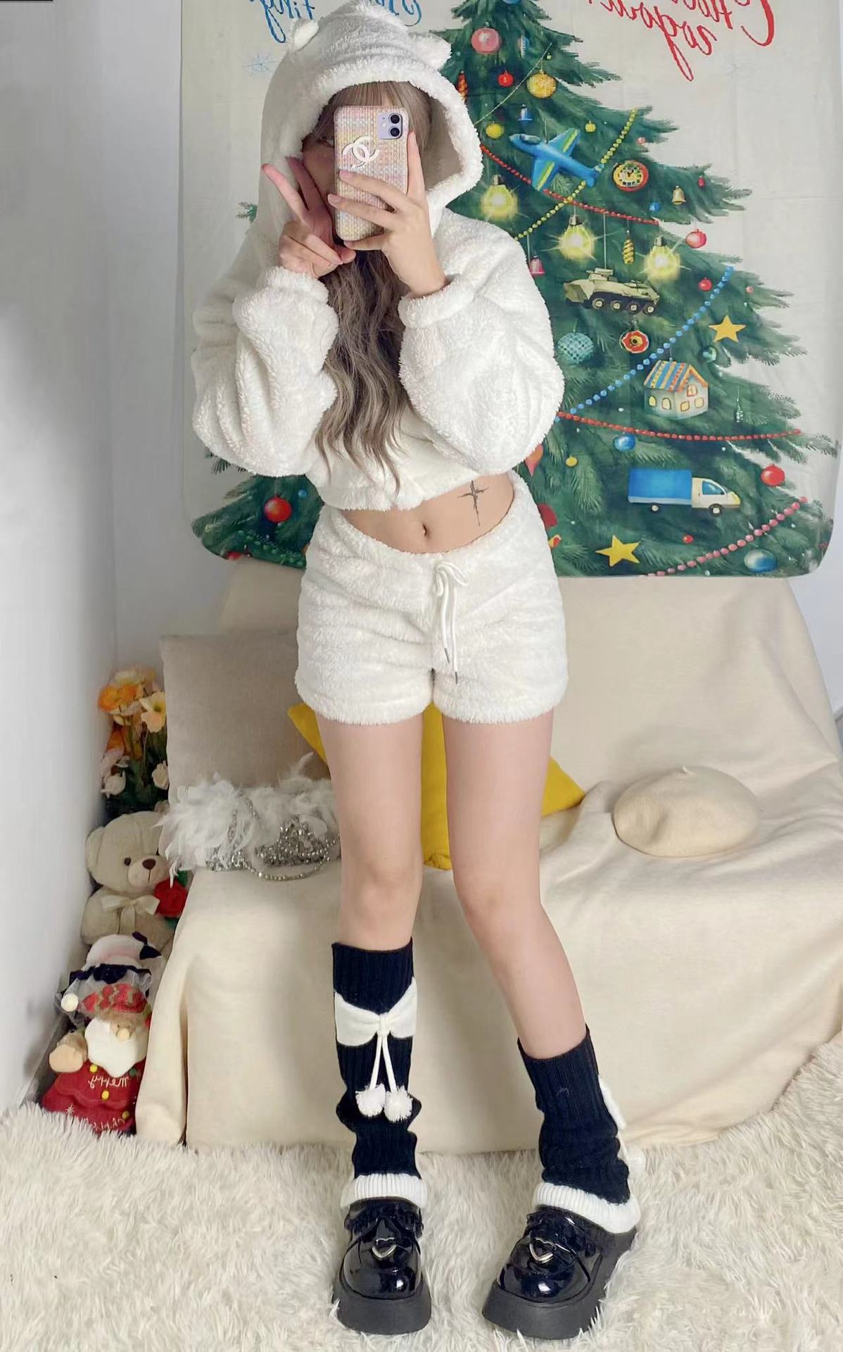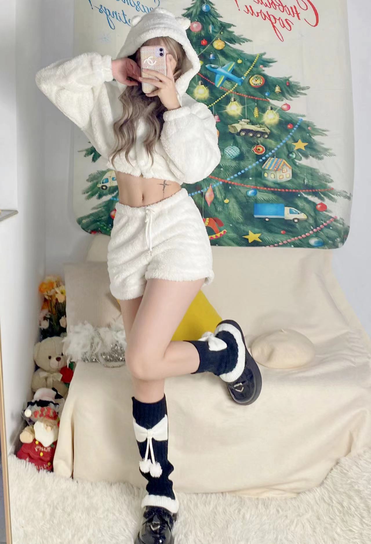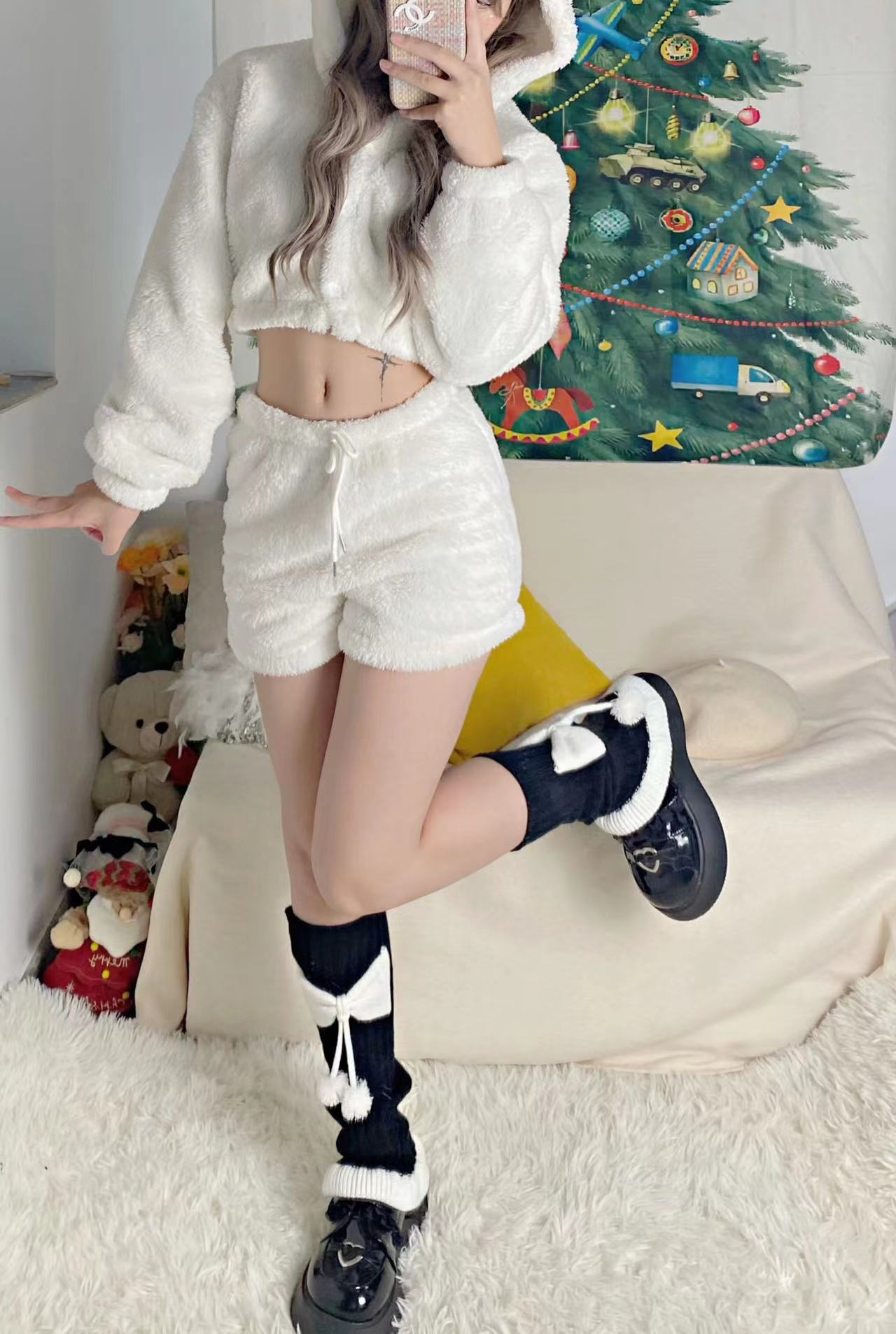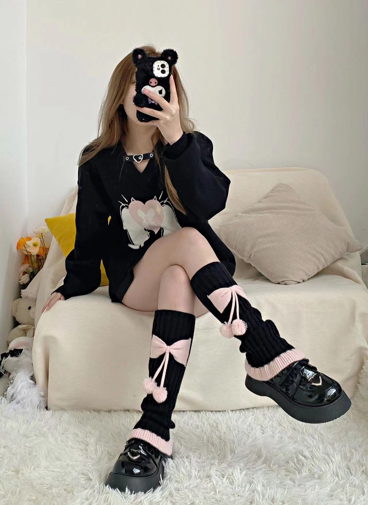 Chinese Red New Year Socks Christmas Leg Warmer Cute Bow Girl Hairy Ball Lace Color Matching Knitted Warm Foot Sock