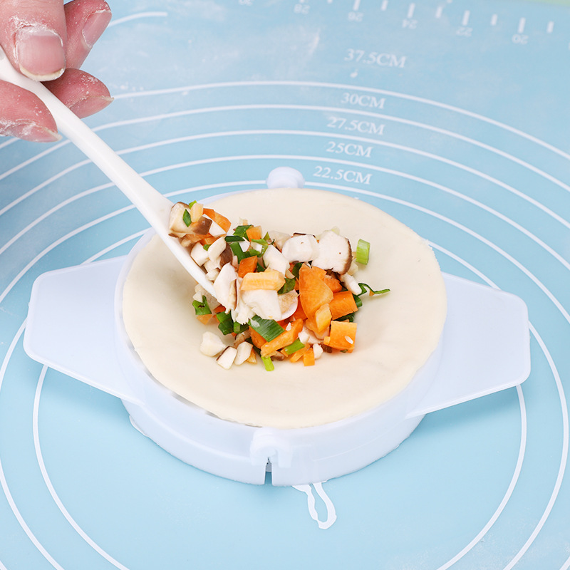 Instructions: Open the dumpling mold, with the teeth facing up, place the dumpling skin flat, put the filling in the middle, close the mold and press firmly to seal.