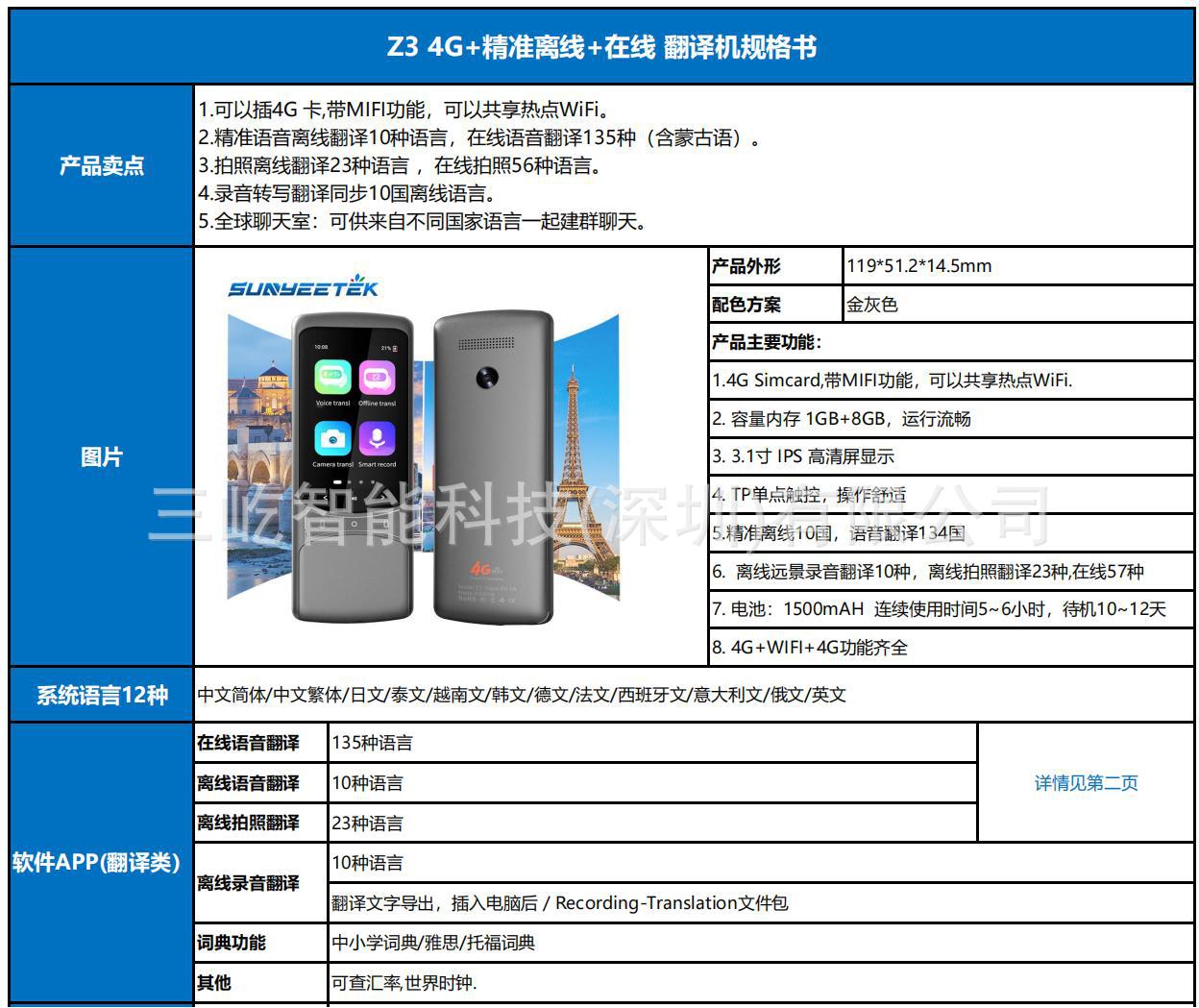 z3 new 4g translating machine simultaneous translation 135 languages mutual translation photo translation translator wifi share device