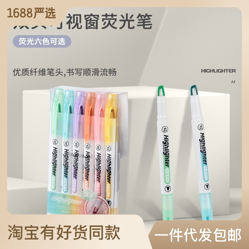 Double-Headed Visual Window Fluorescent Pen Student Notes Focus Modular Plug Transparent Head Macaron Color Graffiti Factory Direct Supply