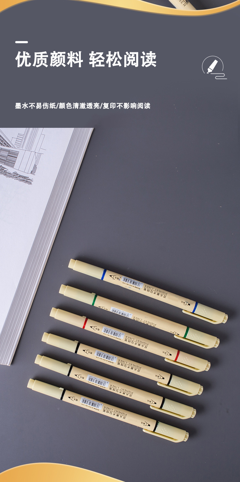 Factory Spot Direct Sales Art Painting Use Pen Calligraphy Graffiti Hook Line Pen Type Writing Brush Double-Headed Art Hook Line Pen