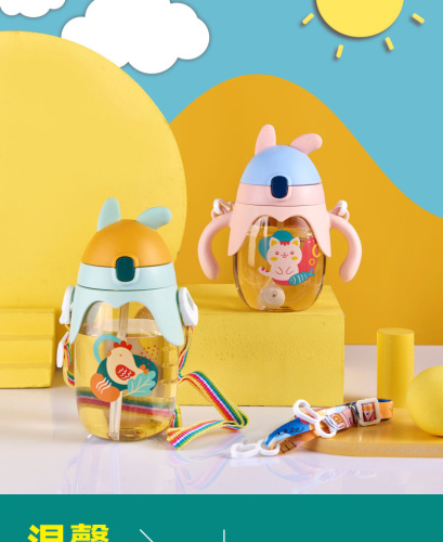 children's plastic water cup high-looking cartoon primary school student straw cup portable bouncing drinking cup