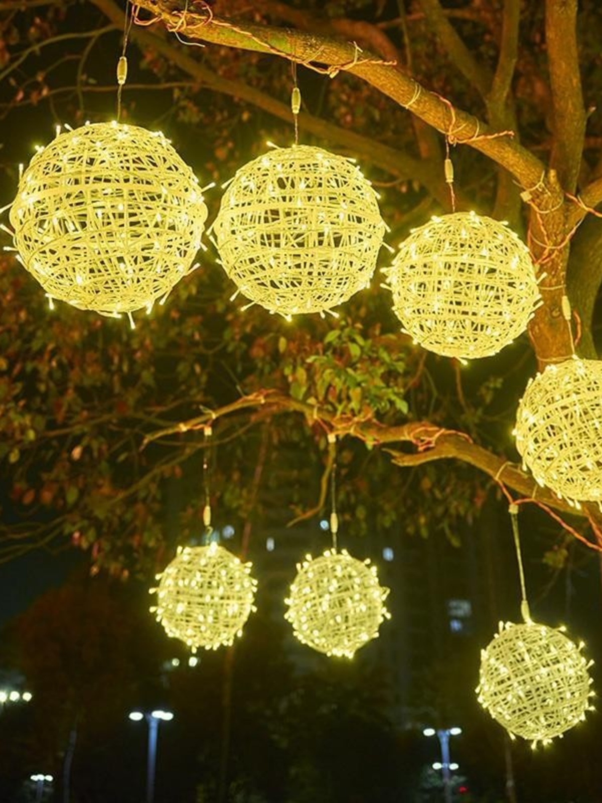 led vine bal light outdoor landscape hanging tree ball light festival street engineering lighting luminous ball ornamental festoon lamp