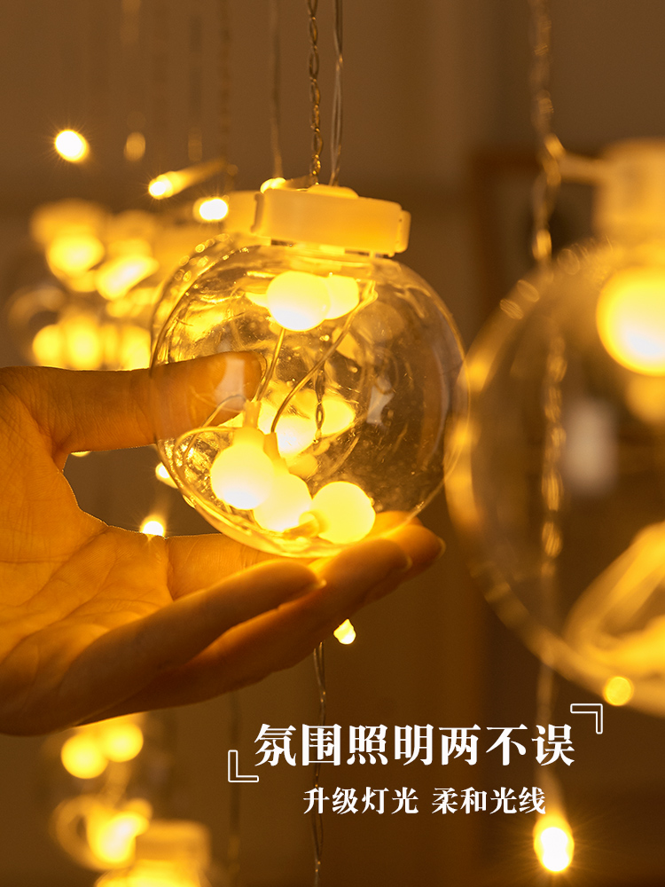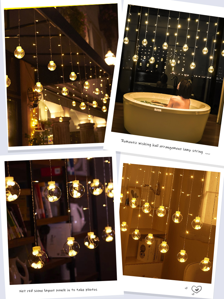 led curtain star light wish orbs lights red decoration room layout solar outdoor colored lantern flashing string 中文版