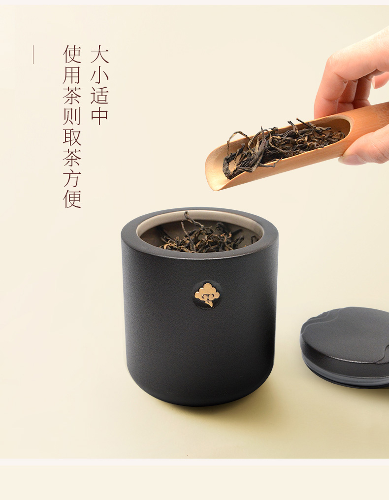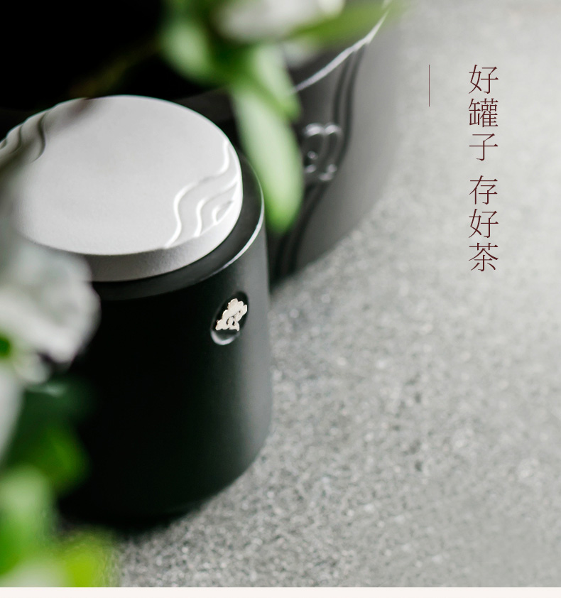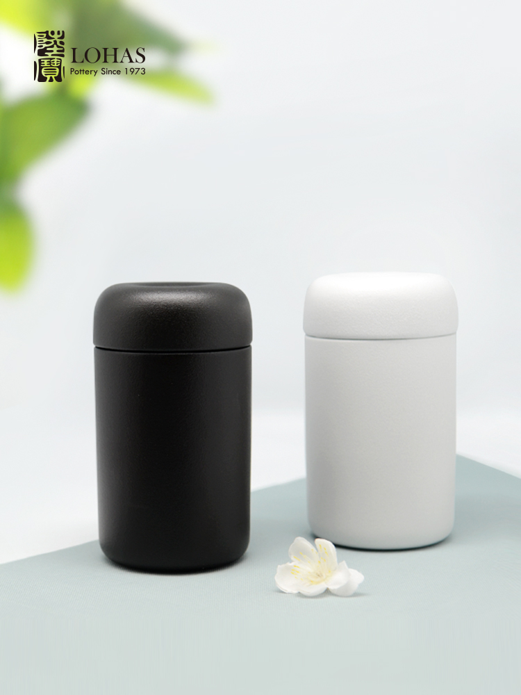 Lubao Ceramic Elegant Xiangsi Tea Pot Household Tea Warehouse Jar Living Room Storage Tea Storage Black and White 100.00G Canned