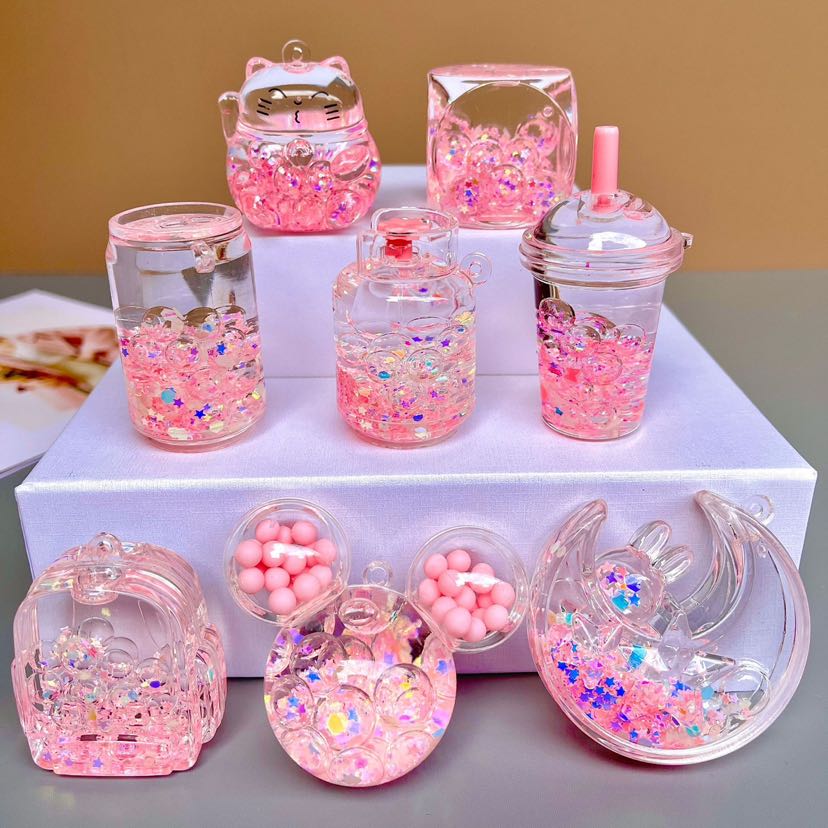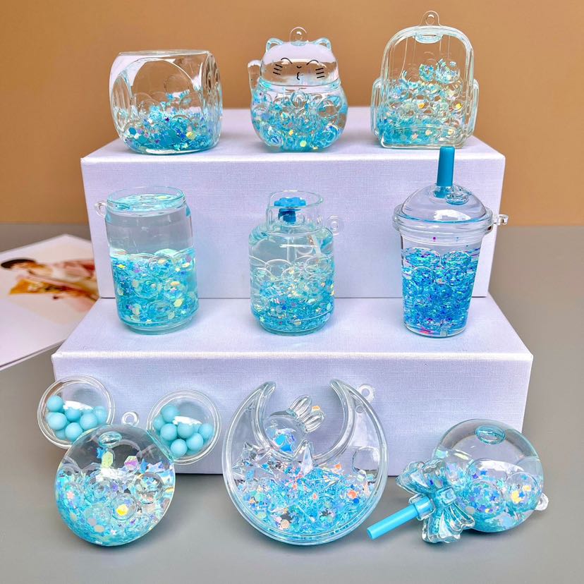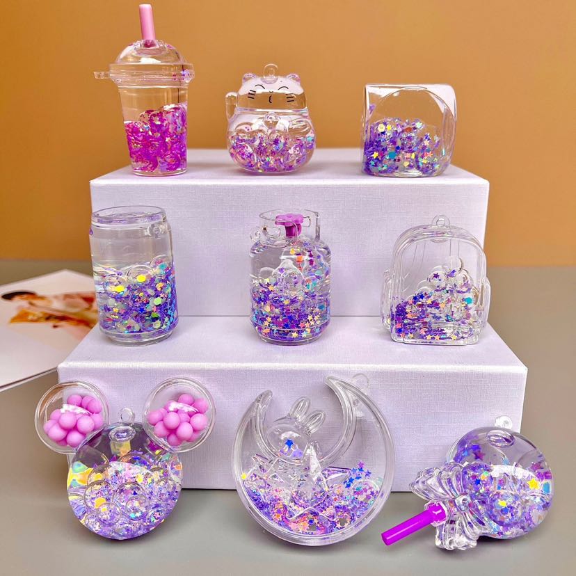 keychain accessories wholesale mixed batch luminous bubble beads small gift ornaments oil flowing sand bottle pendant bag hanging ornaments 中文版