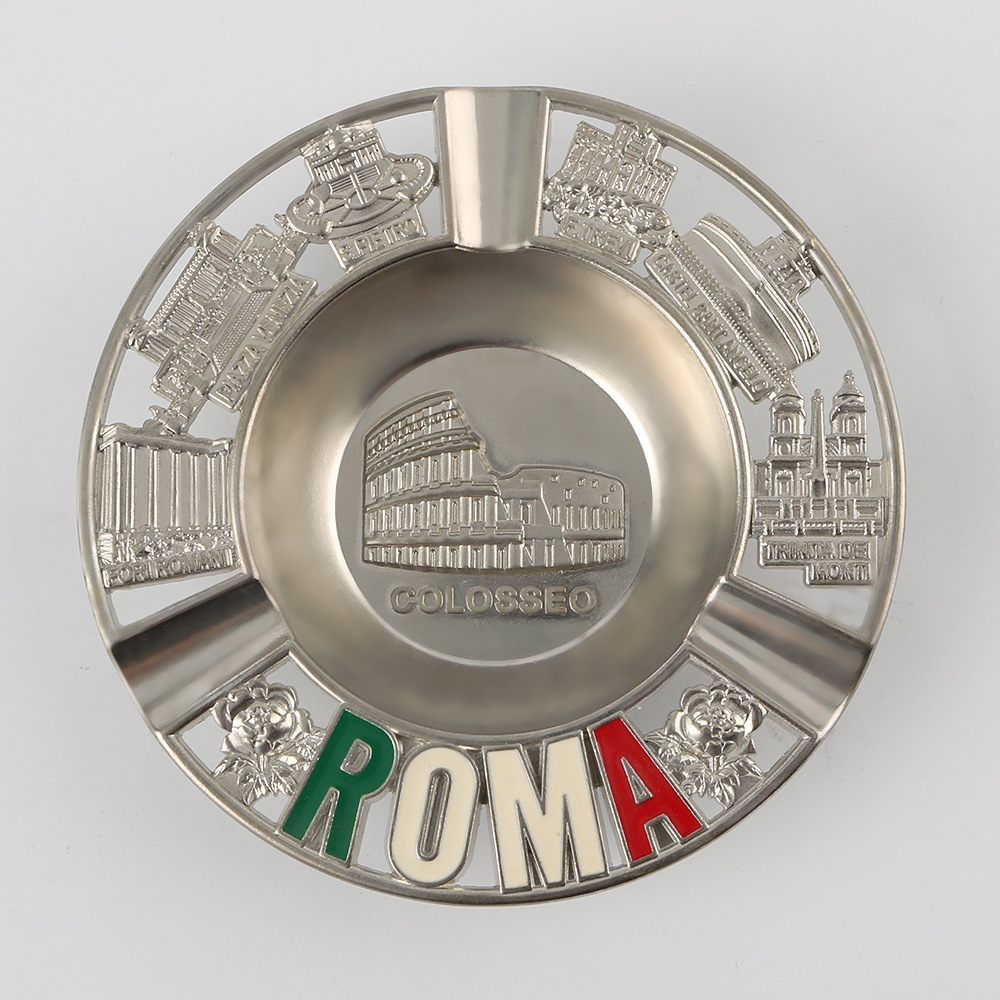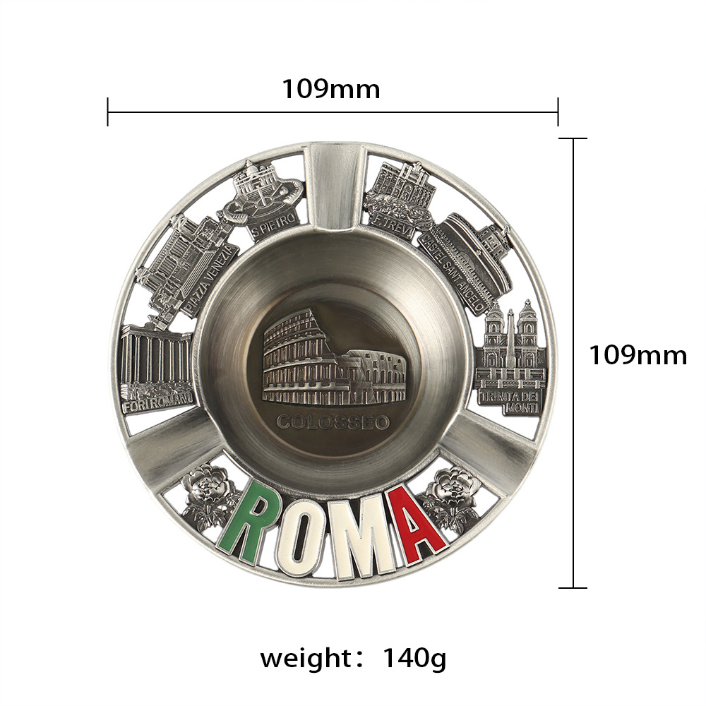 round Metal Ashtray Creative Retro Rome Colosseum Travel Commemorative Gift Hollow out Epoxy Ashtray Customization