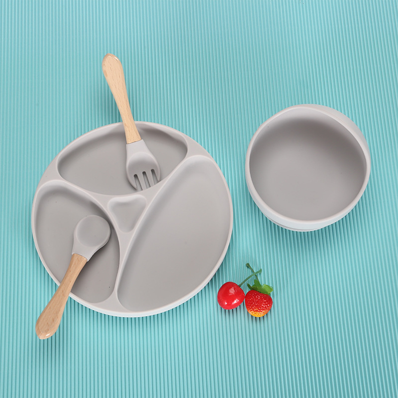 disc-oxford gray * wooden spoon fork * bib * snail bowl * water cup