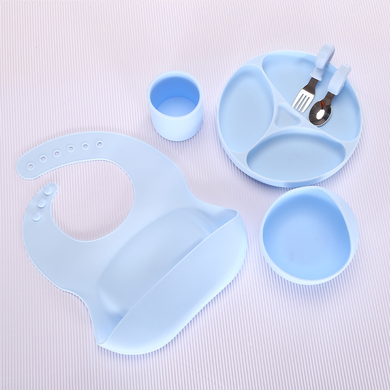 disc-haze blue * stainless steel spoon * bib * snail bowl * water cup
