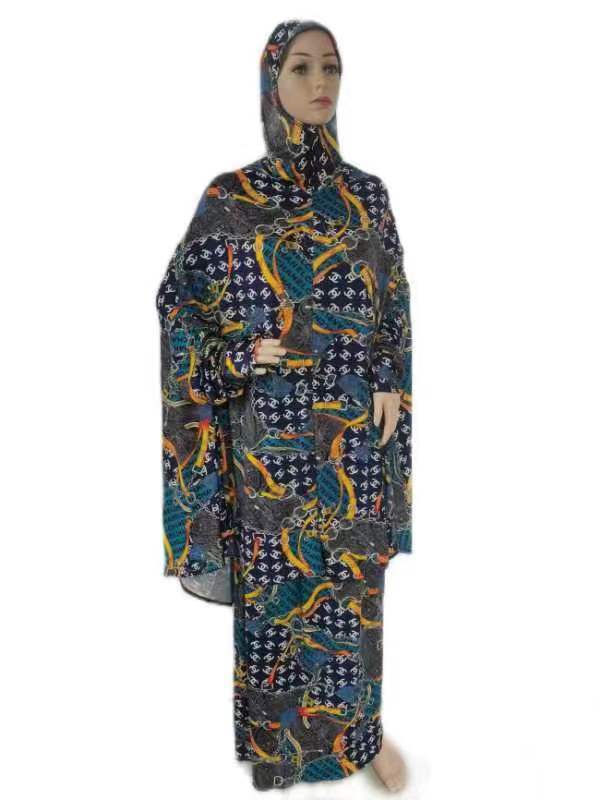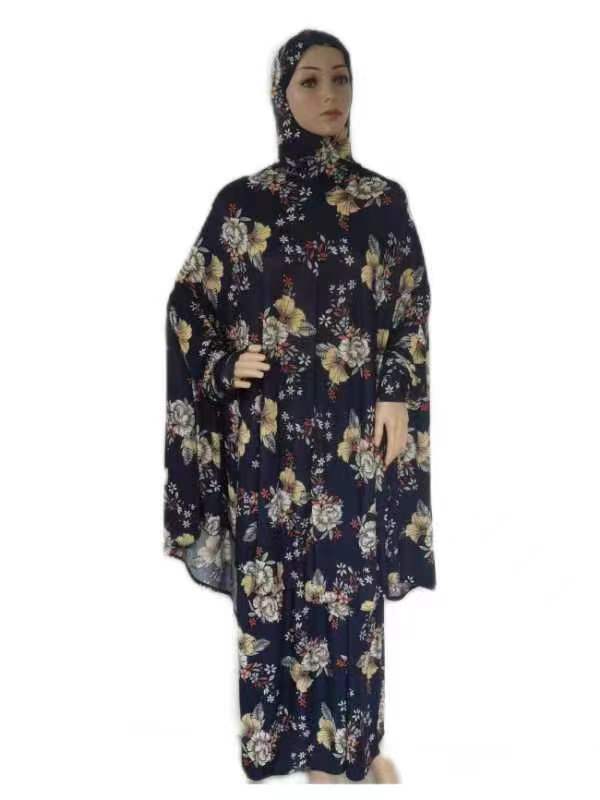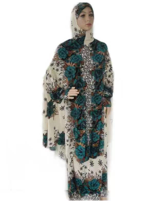 Large Size Printed Fabric Long Gown with Flower Pattern Set for African Mother's Dress