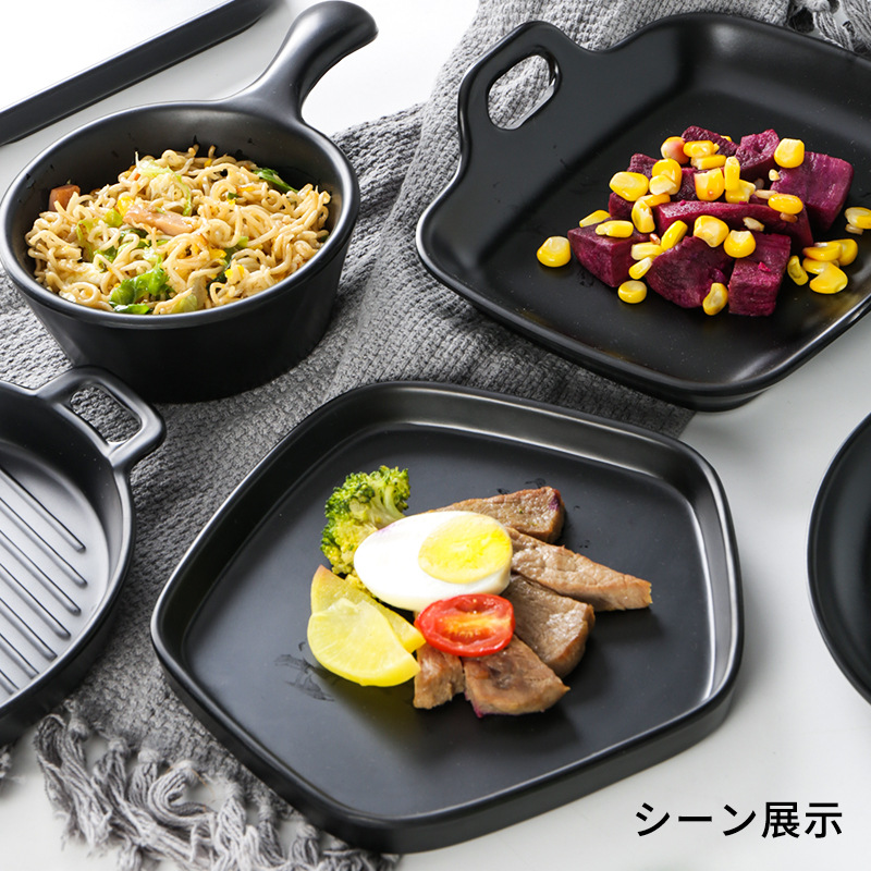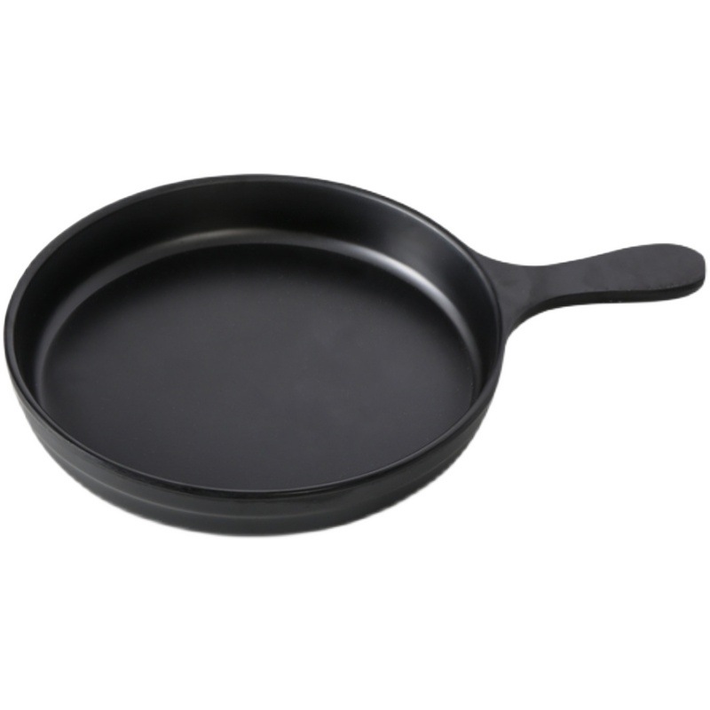 black thick melamine frosted sushi barbecue dish handle plate personalized wok dish creative shape snack plate 中文版