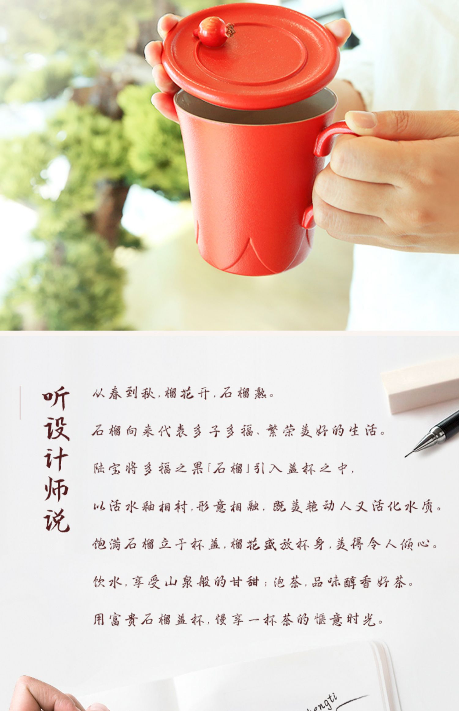 Lubao Flagship Store Fugui Pomegranate Cup with Cover Tea Cup Mug Office Drinking Glass Scented Tea Cup Ceramic Water Set 中文版