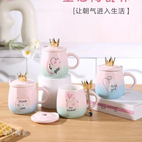 creative crown with cover spoon ceramic cup coffee cup water cup mug