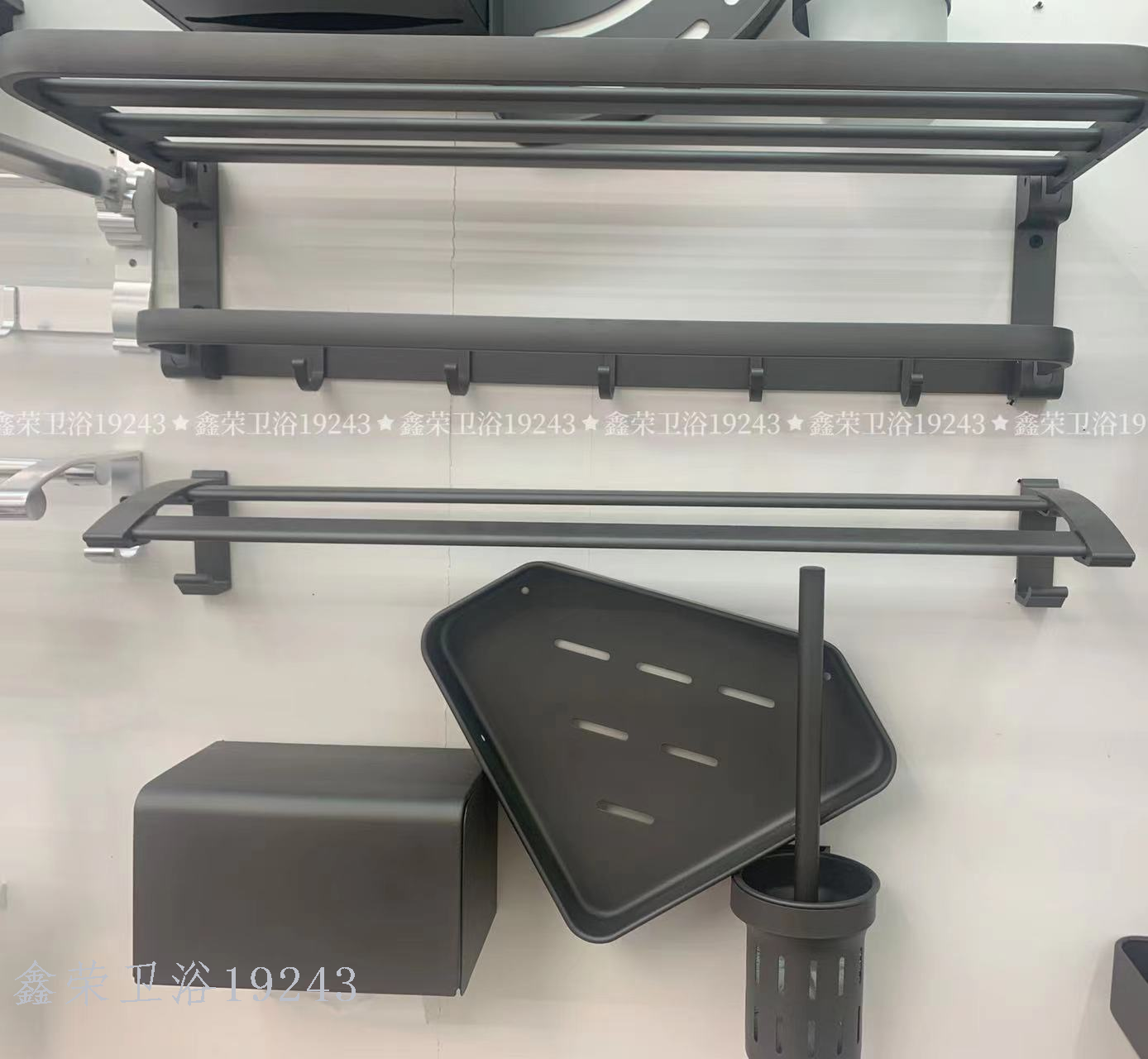 Aluminum Towel Rack Bathroom Punch-Free Towel Rod Storage Bath Towel Rack Folding Bathroom Pendant Five-Piece Set