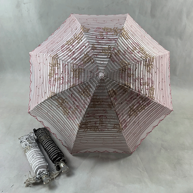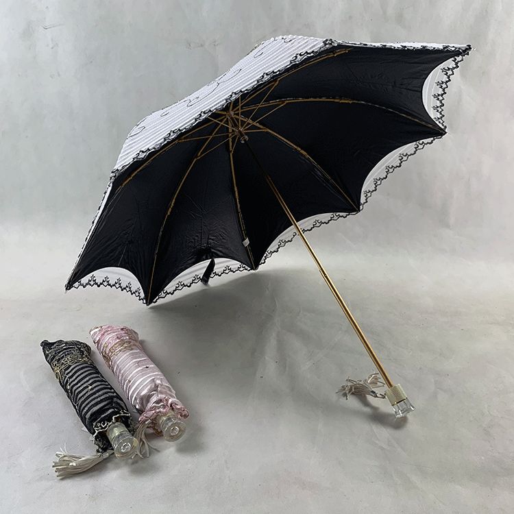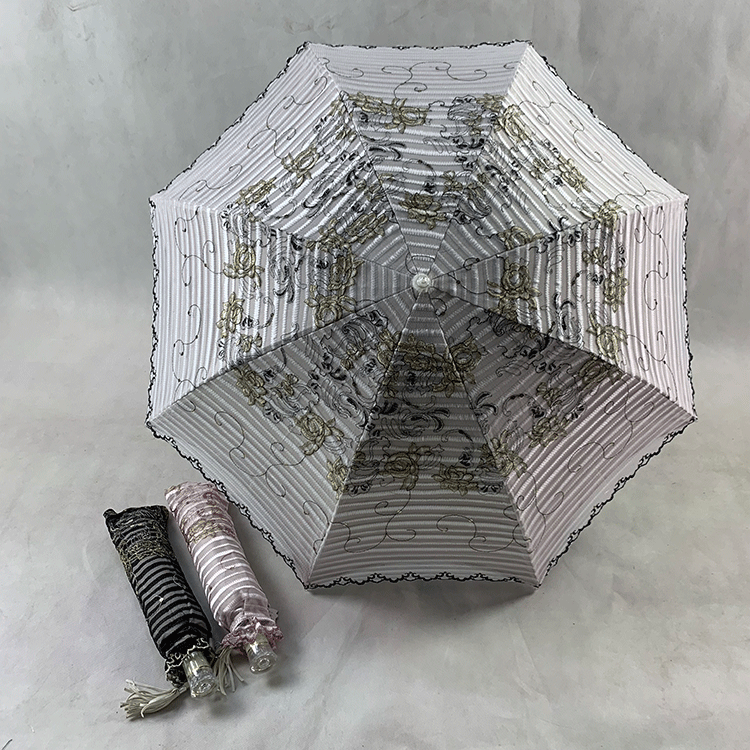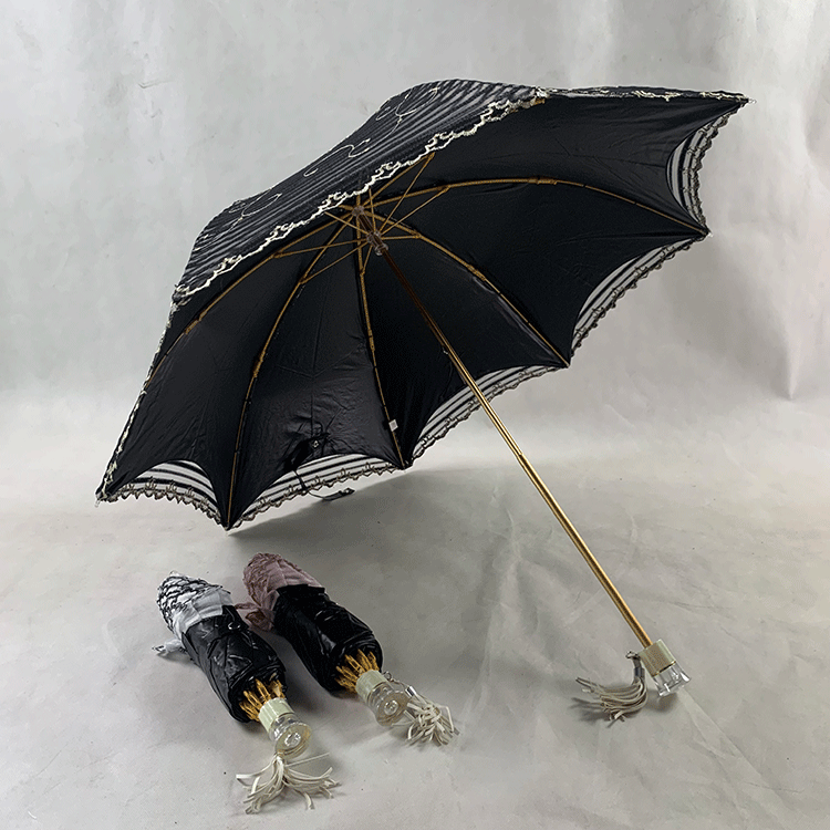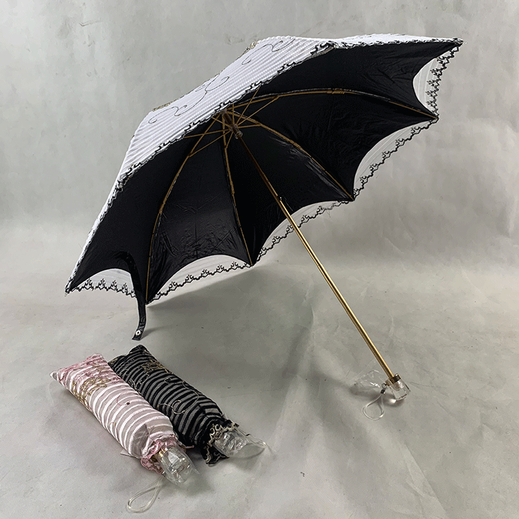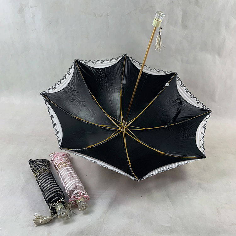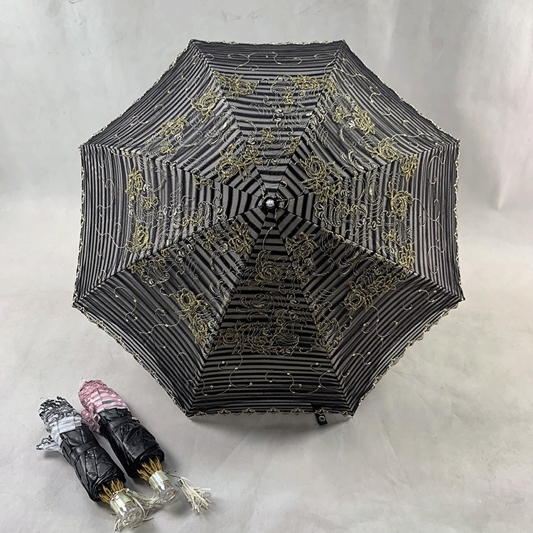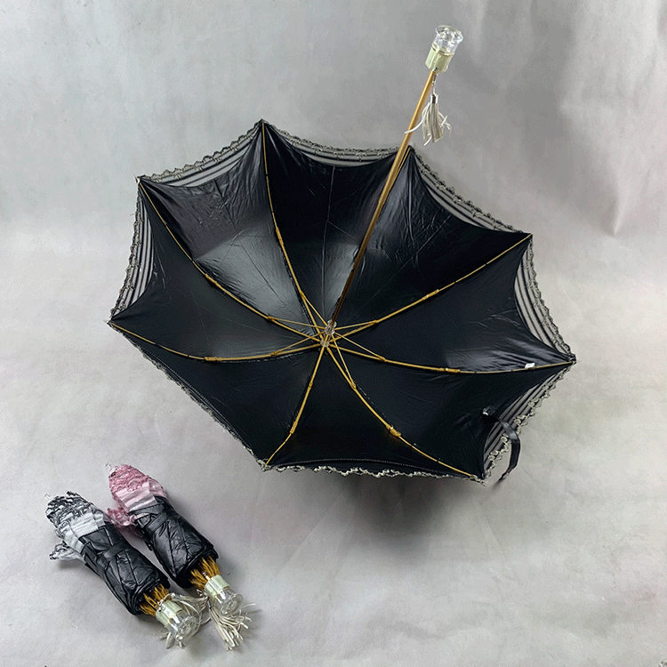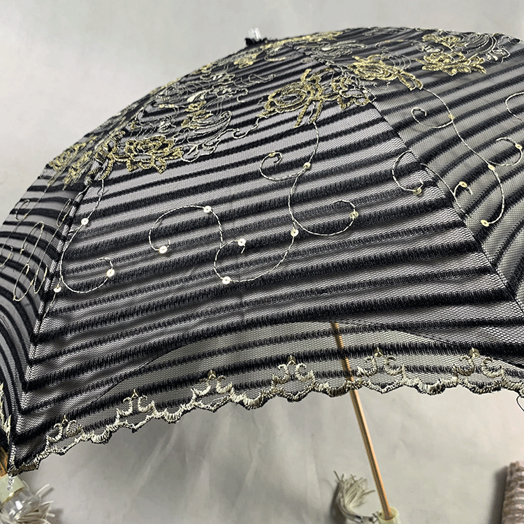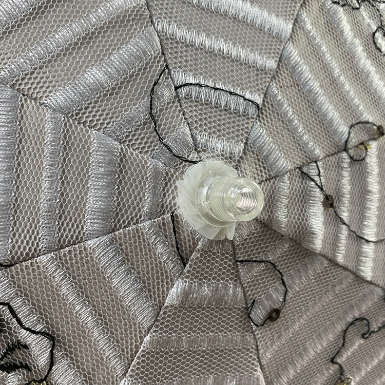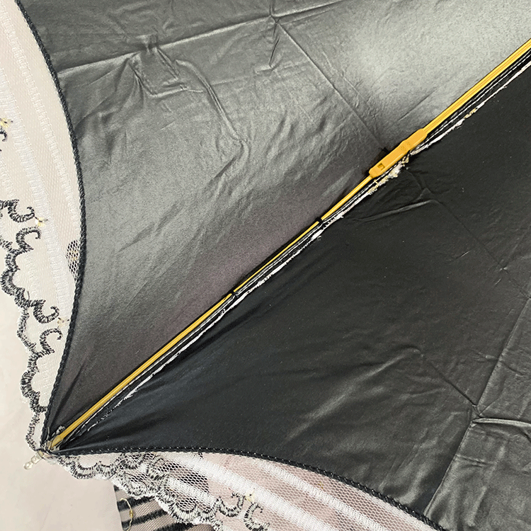 Double-layer fabric design, the outer layer is a mesh embroidery sequin fabric, and the inner layer is a black rubber anti-shai waterproof sunshade fabric, suitable for use in both sunny and rainy days!