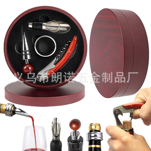 red round box rosewood knife rosewood round head 2 silk cork stainless steel pourer 4-piece set