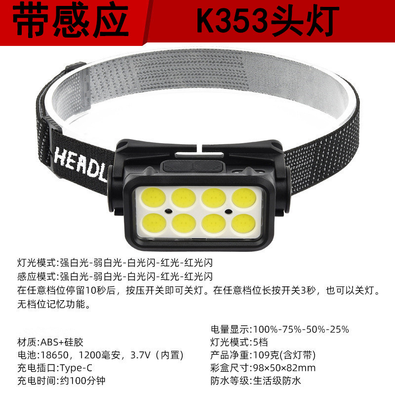k353 headlamp (white light * red light) with induction