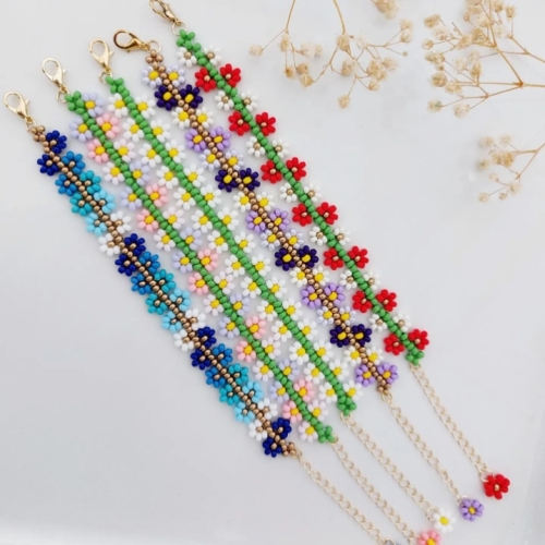 new non-fading all environmentally friendly hand-woven small colorful beads plum blossom children's necklace skirt flower necklace 中文版