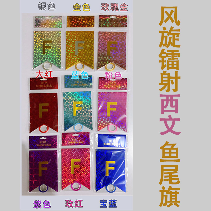 New Wind Spinning Laser Fishtail Flag Banner Birthday Hanging Strip Party Supplies Gilding Birthday Flag Cross-Border Foreign Trade 中文版
