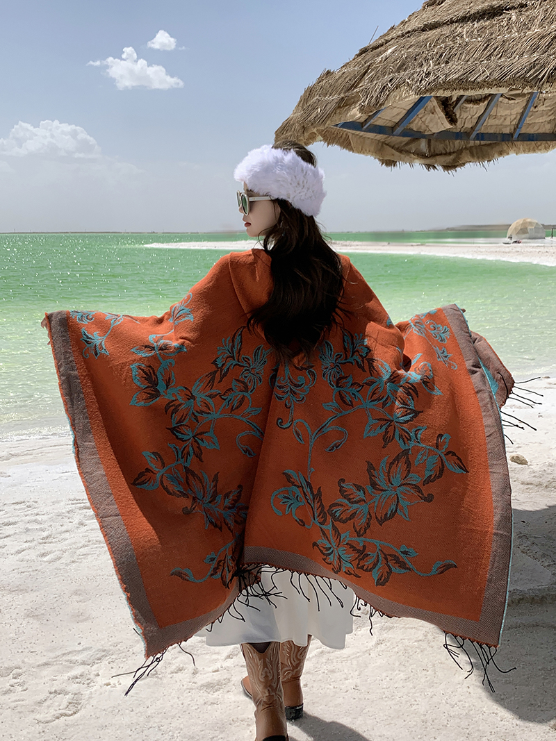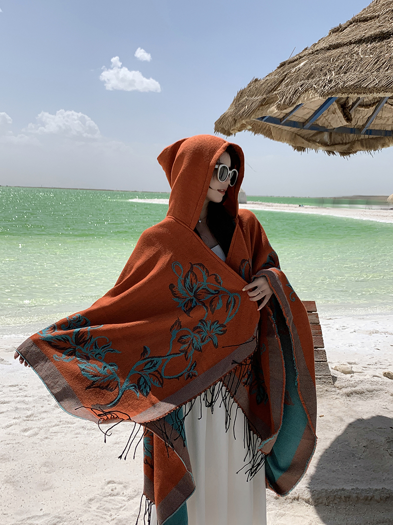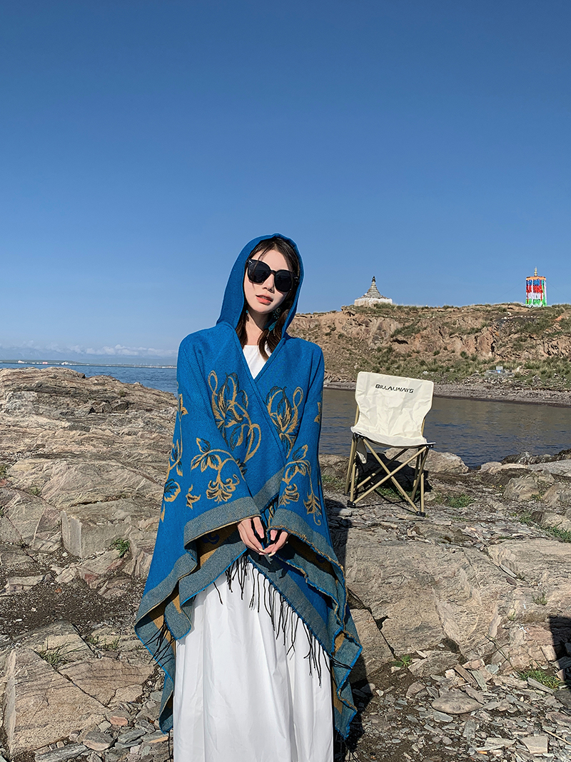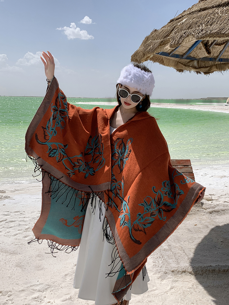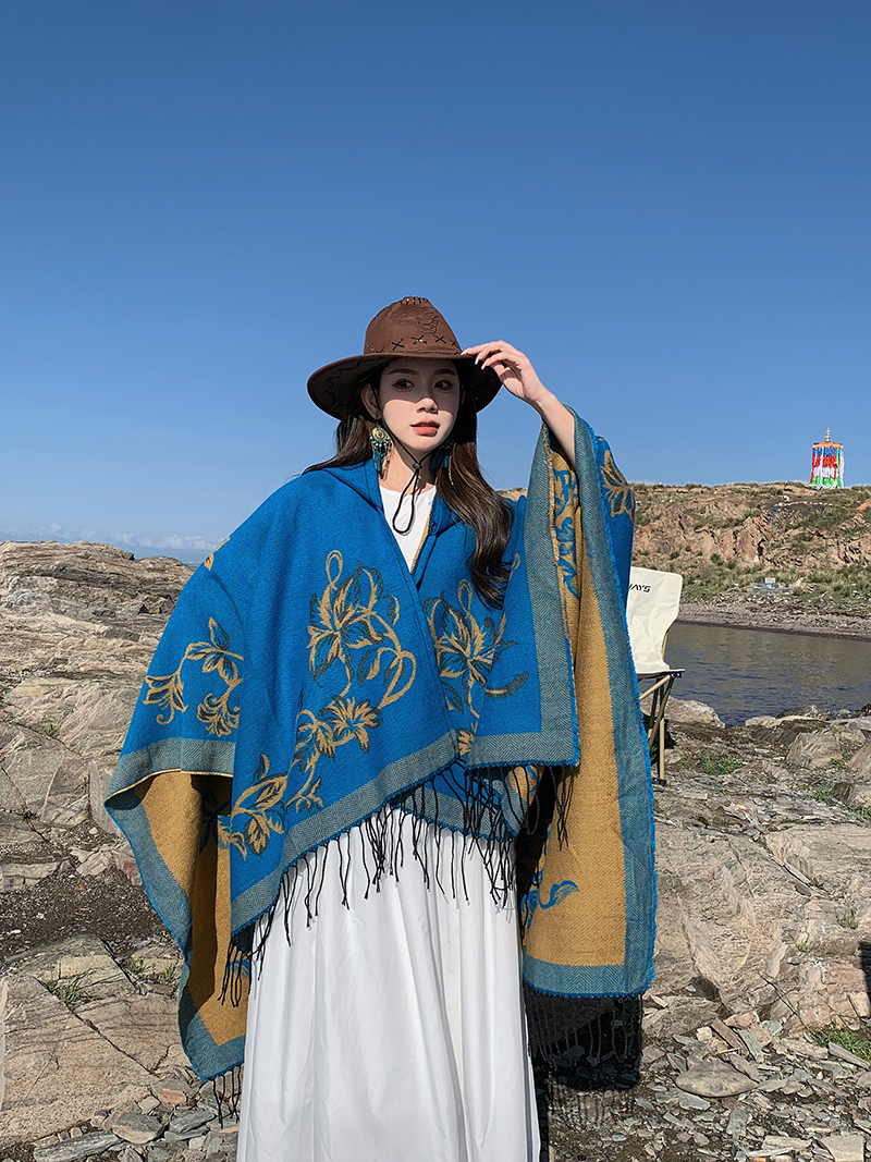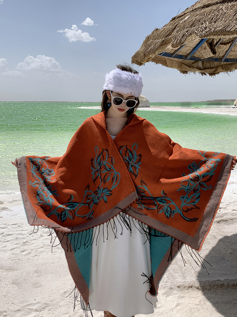 wholesale travel wear cloak robe coat hooded shawl outer match women's ethnic style split shawl river scarf 中文版