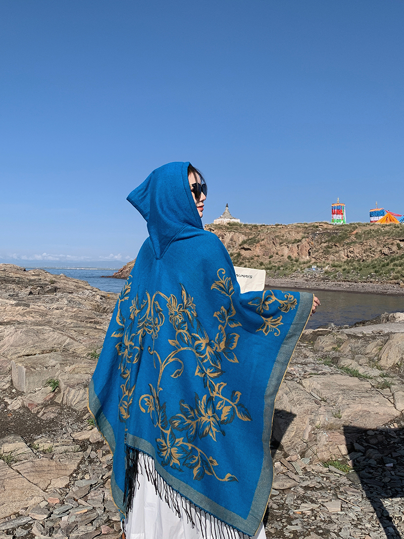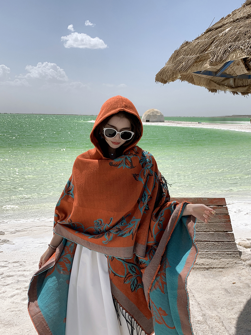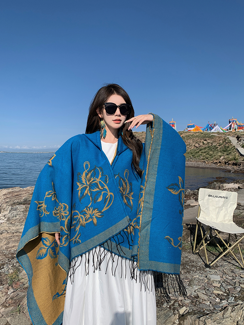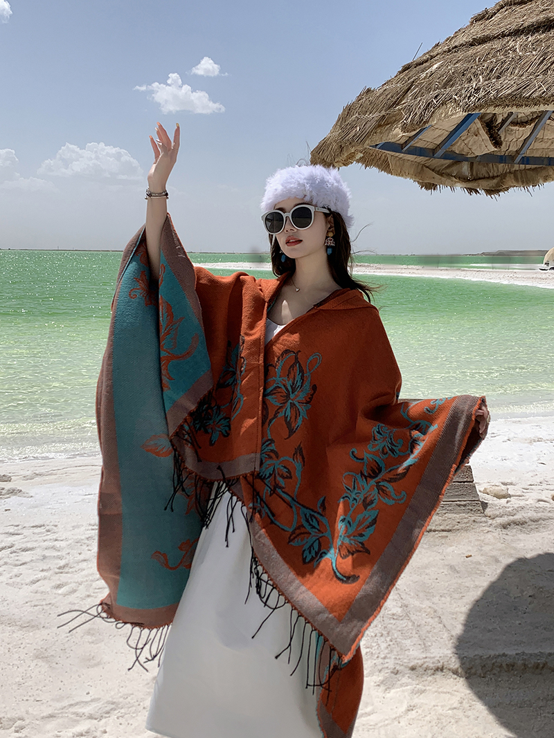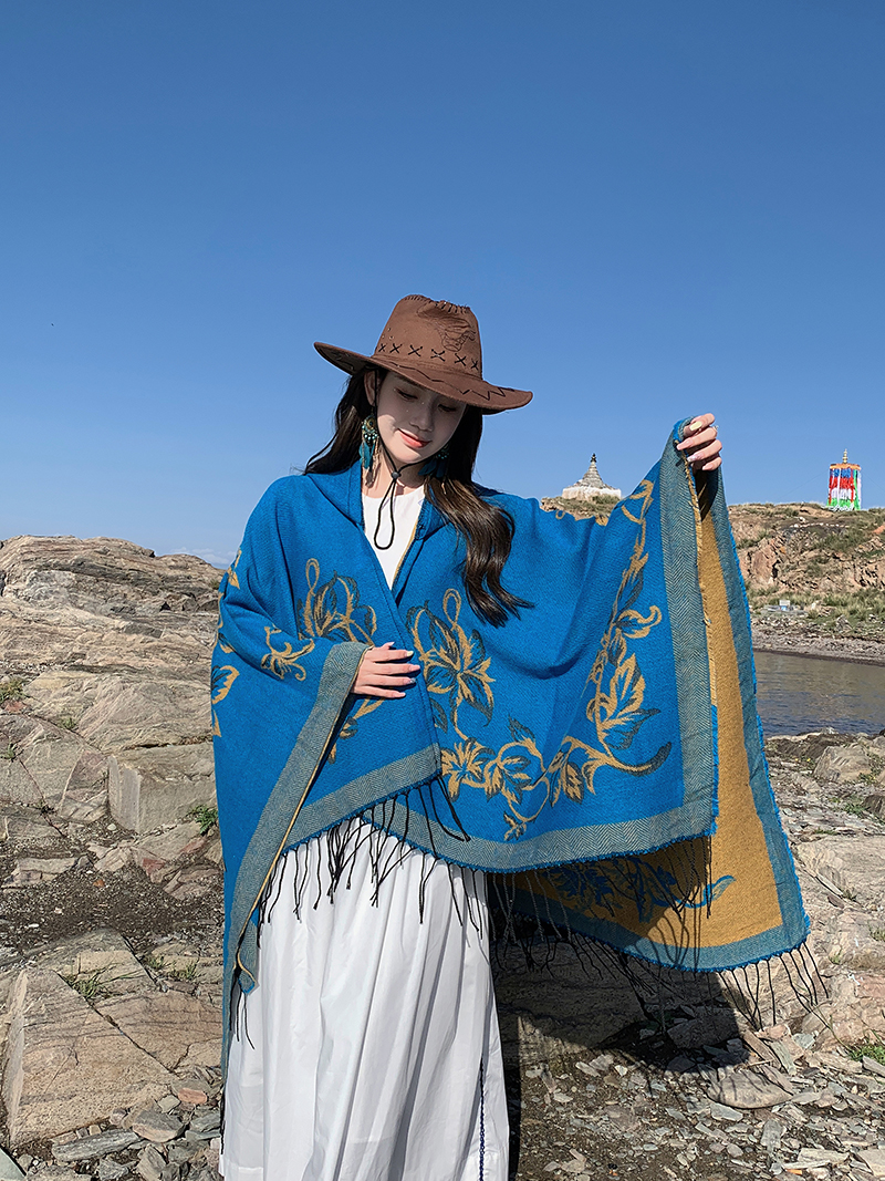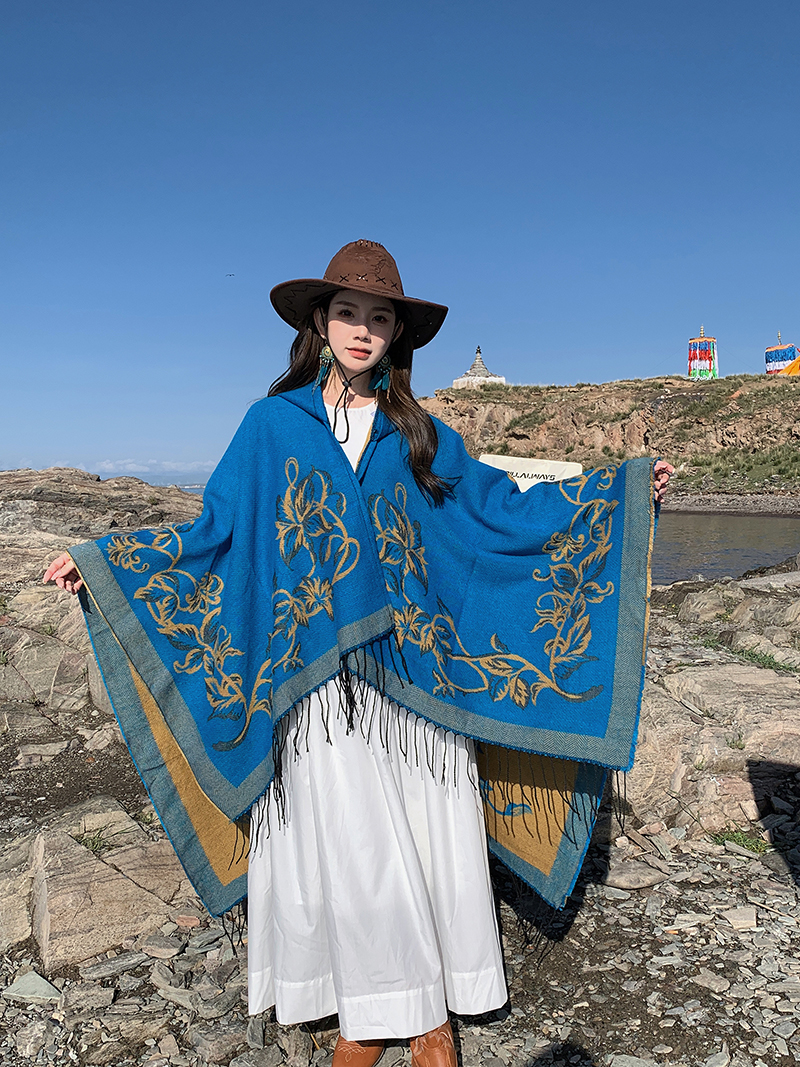 wholesale travel wear cloak robe coat hooded shawl outer match women's ethnic style split shawl river scarf 中文版