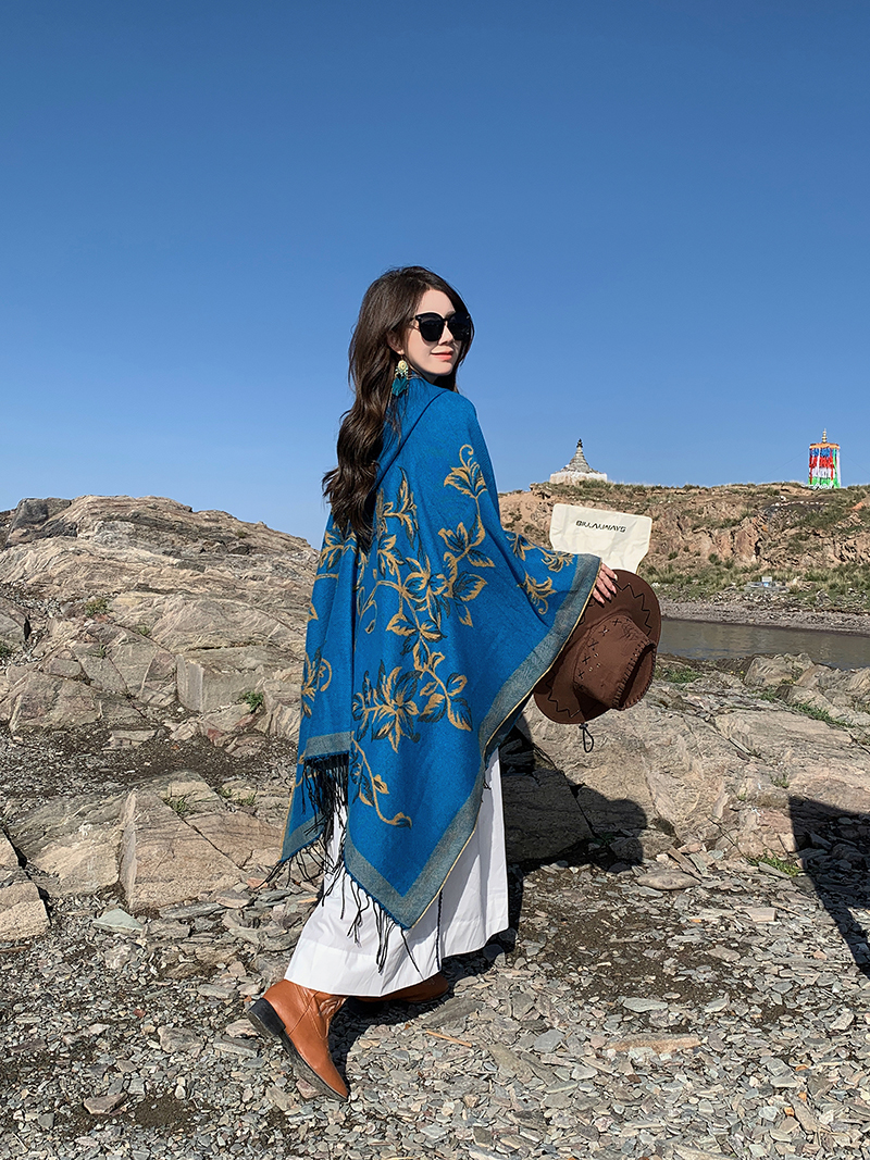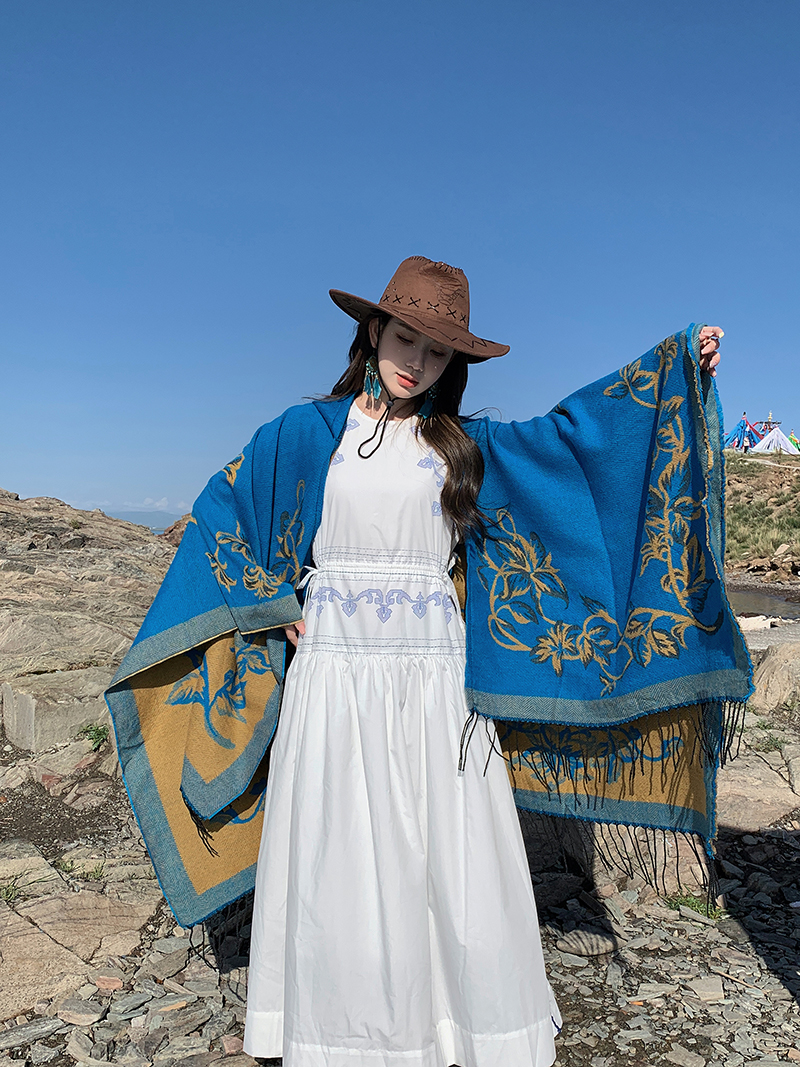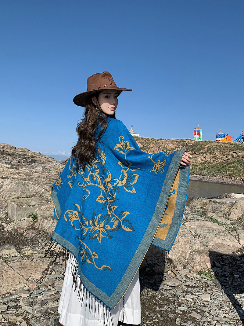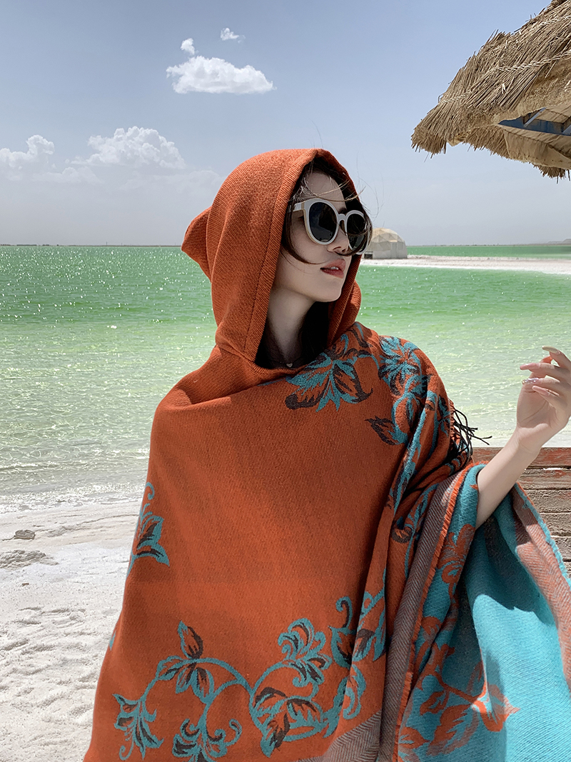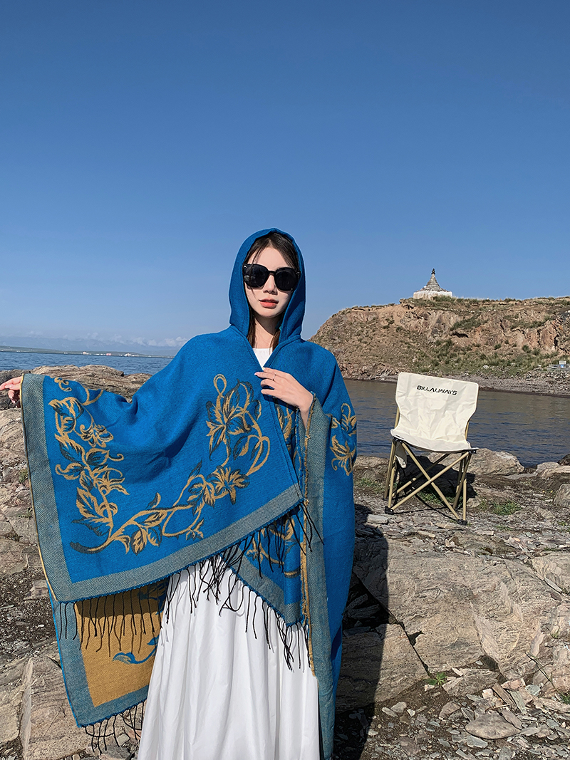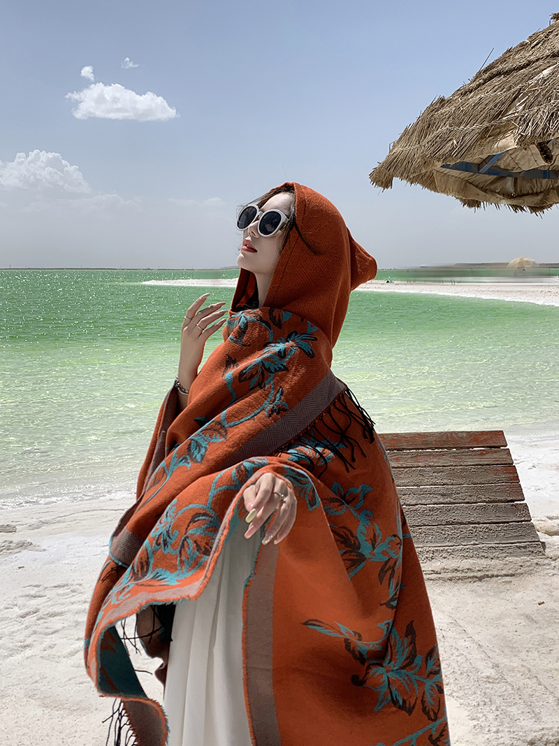 wholesale travel wear cloak robe coat hooded shawl outer match women's ethnic style split shawl river scarf 中文版