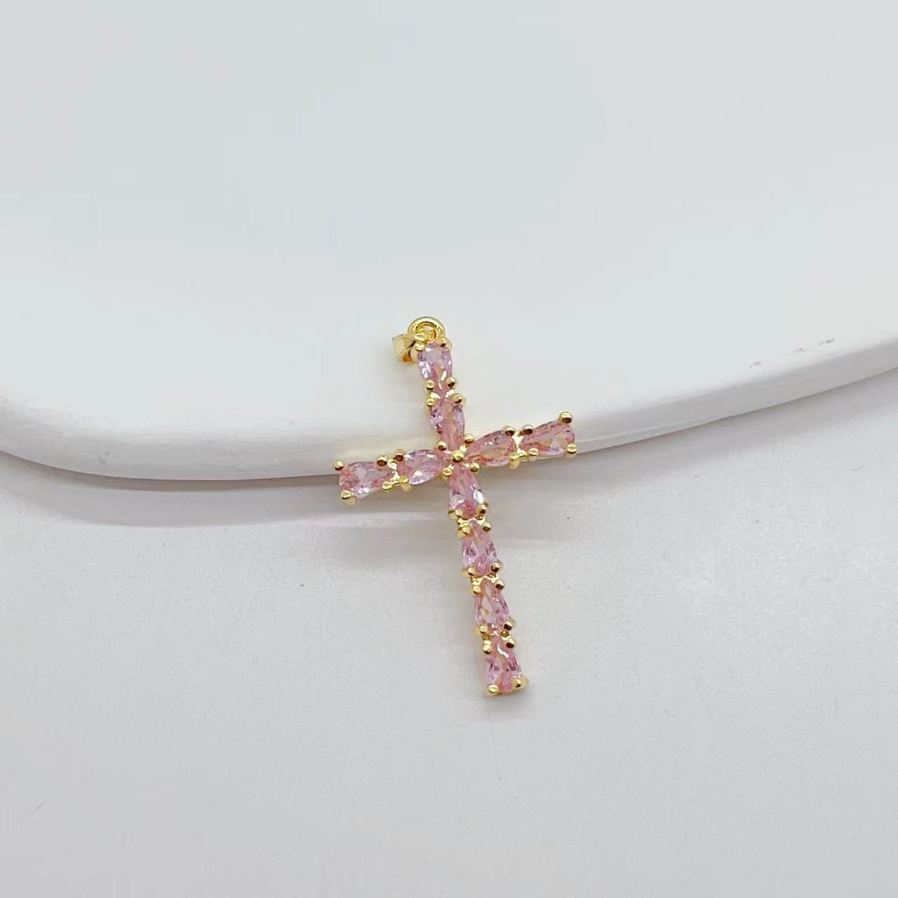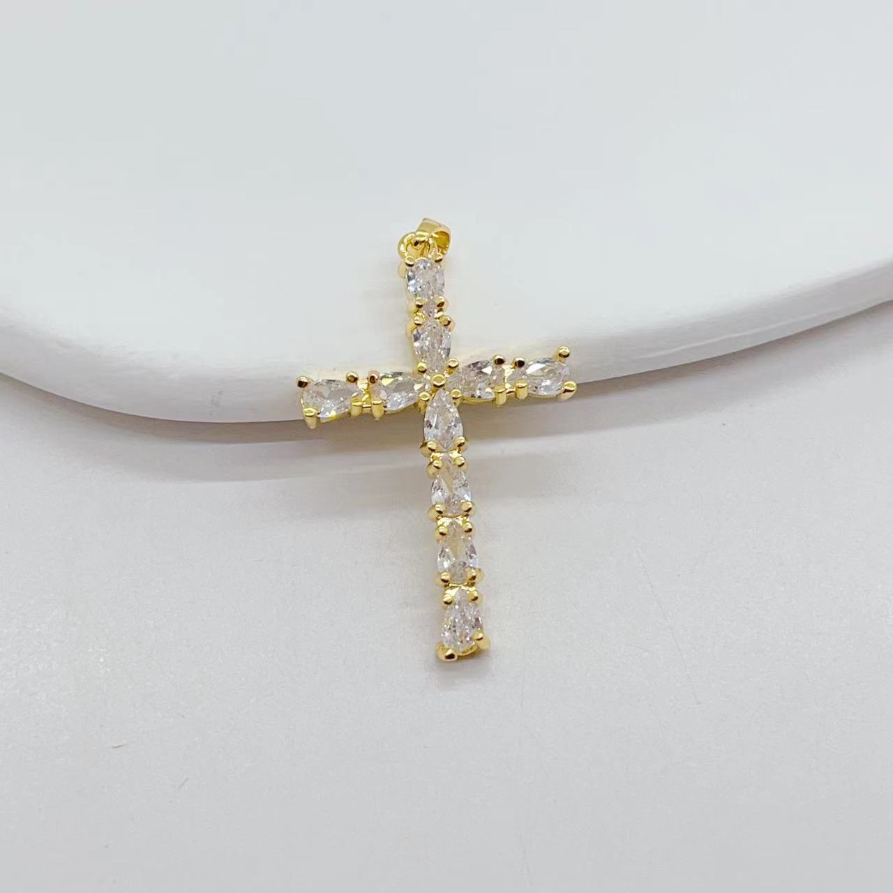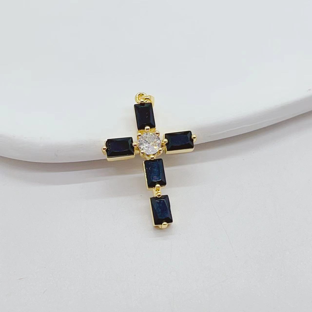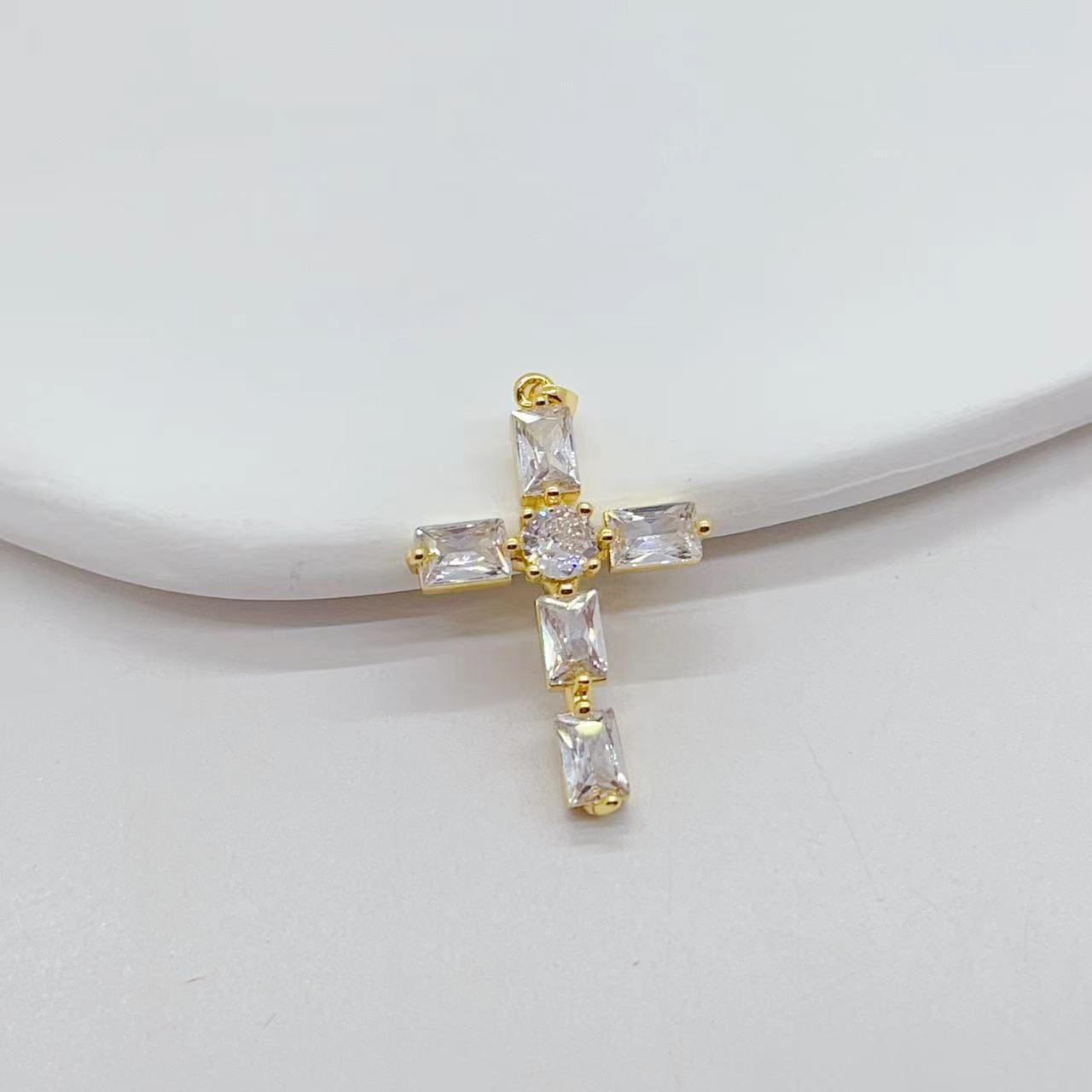 cross-border e-commerce exclusively for affordable luxury fashion geometric cross necklace pendant female diy copper zircon electroplating 18k 中文版