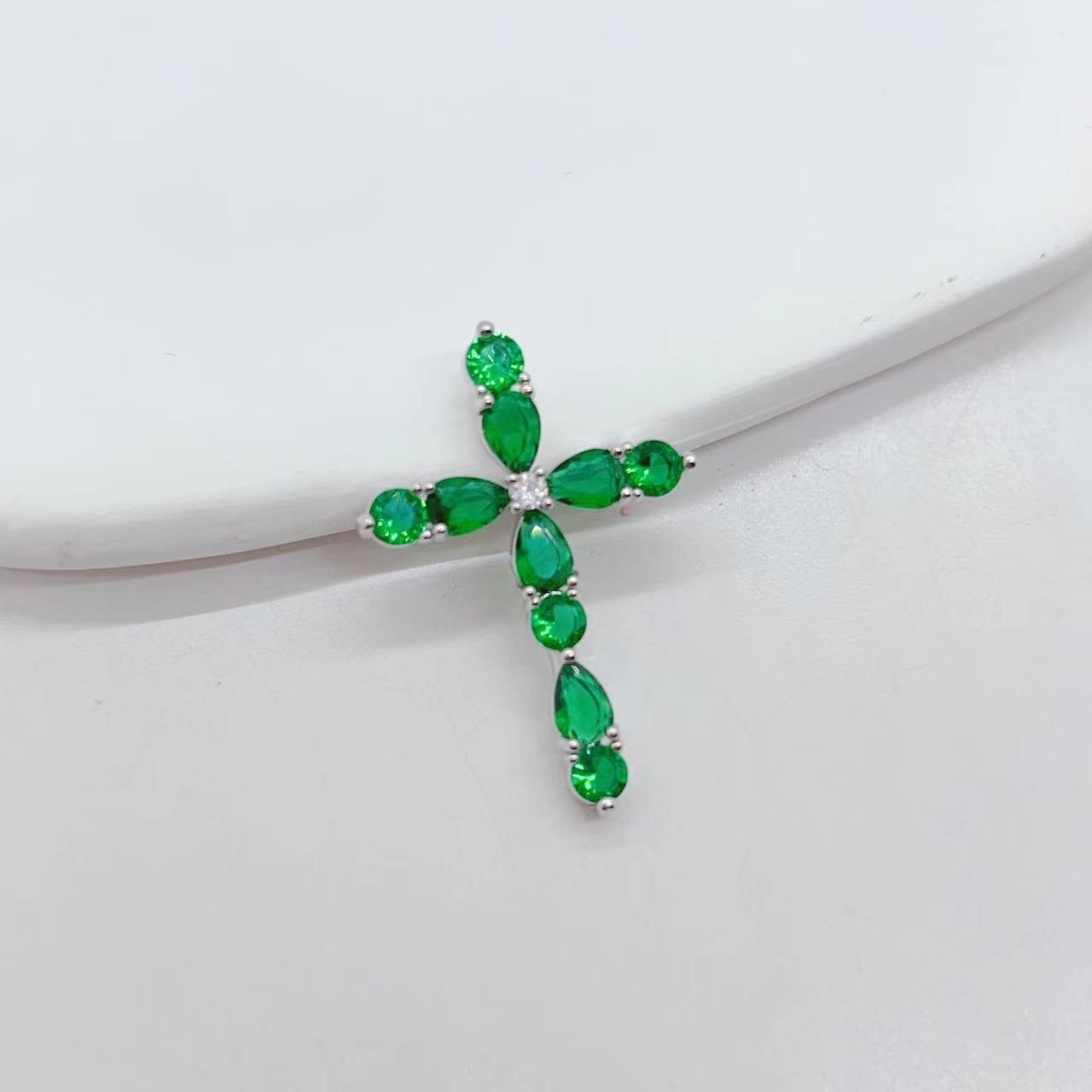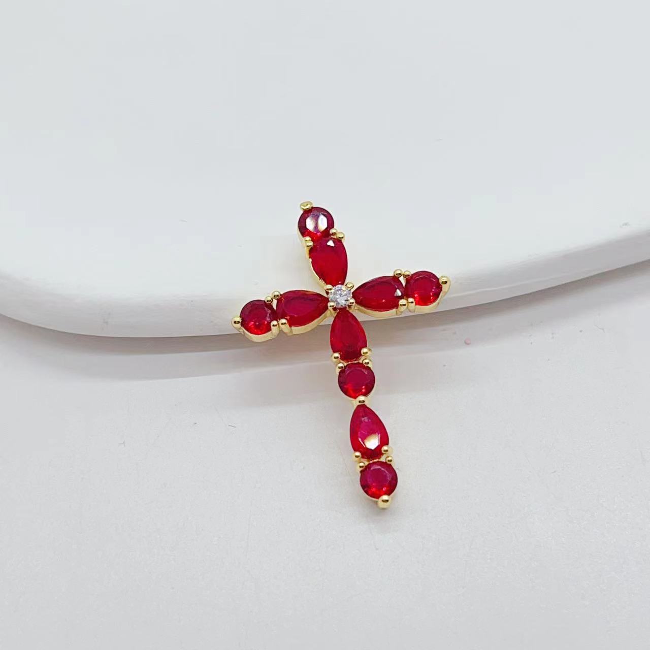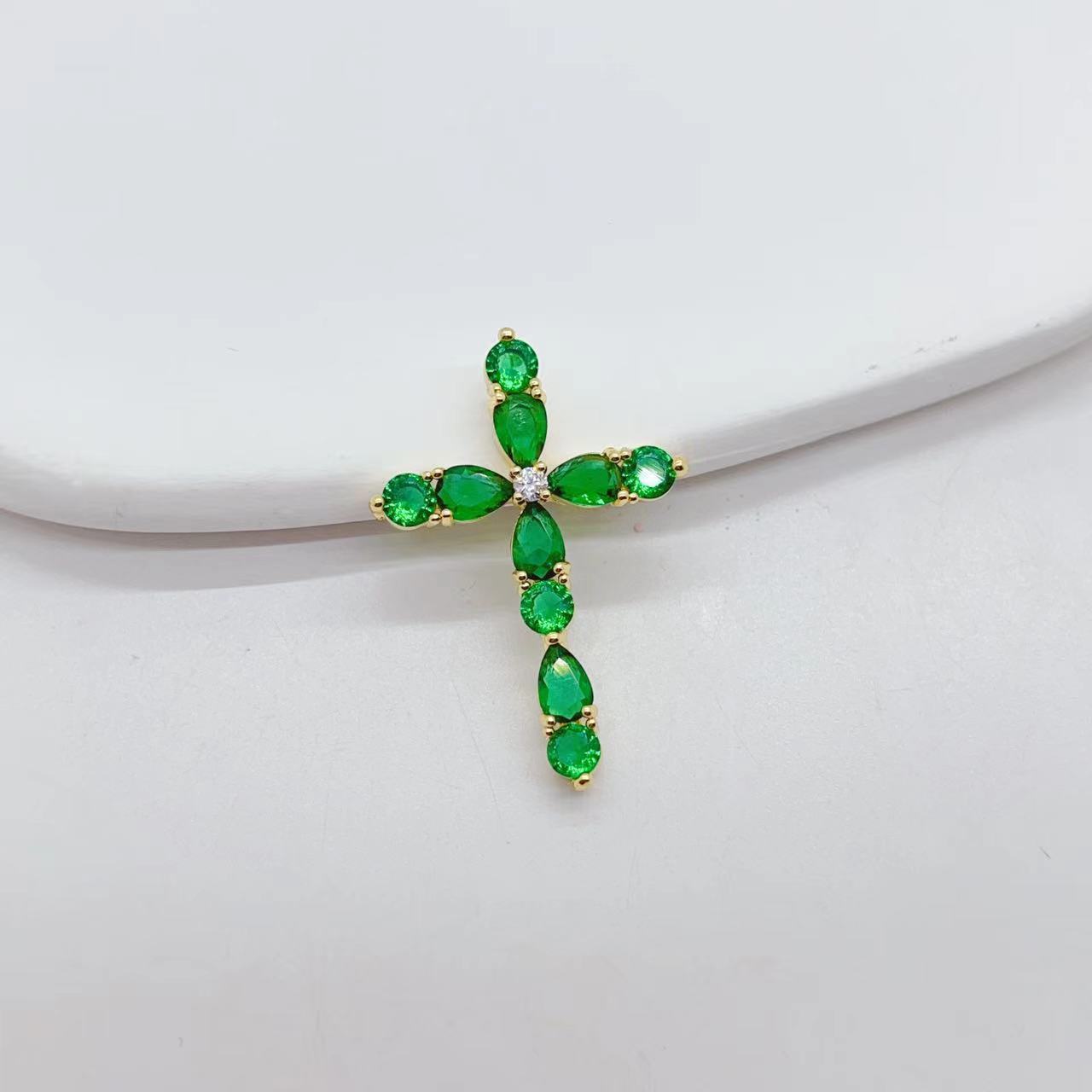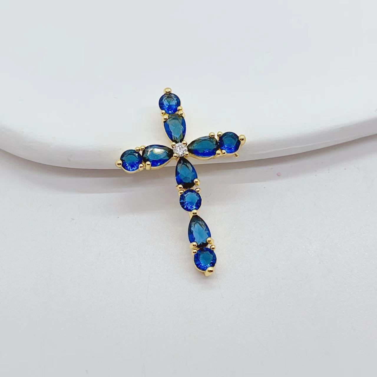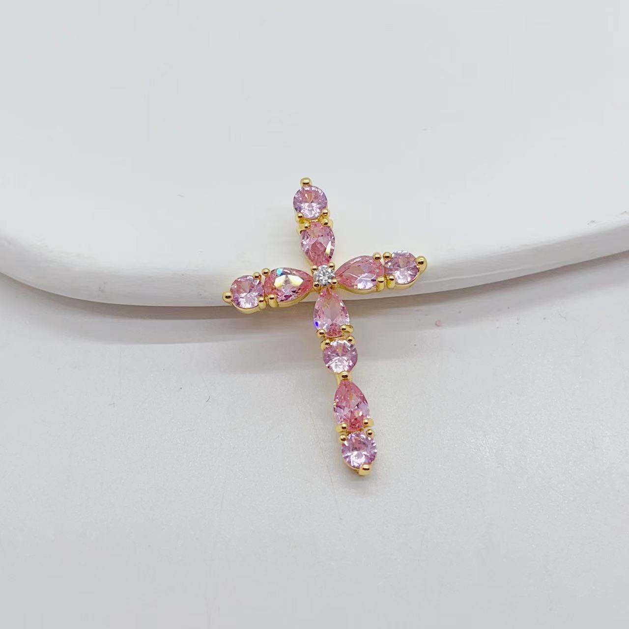 cross-border e-commerce exclusively for affordable luxury fashion geometric cross necklace pendant female diy copper zircon electroplating 18k 中文版