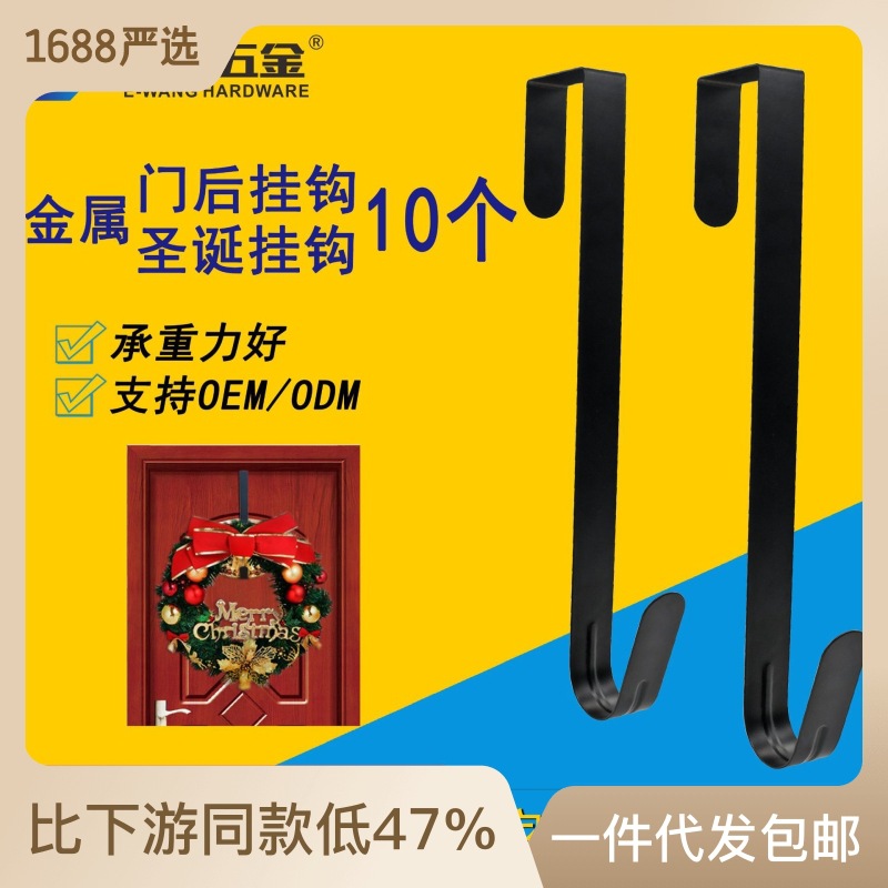 Amazon hot sale black iron metal hook load-bearing Christmas hook 10 pack free door rear hook