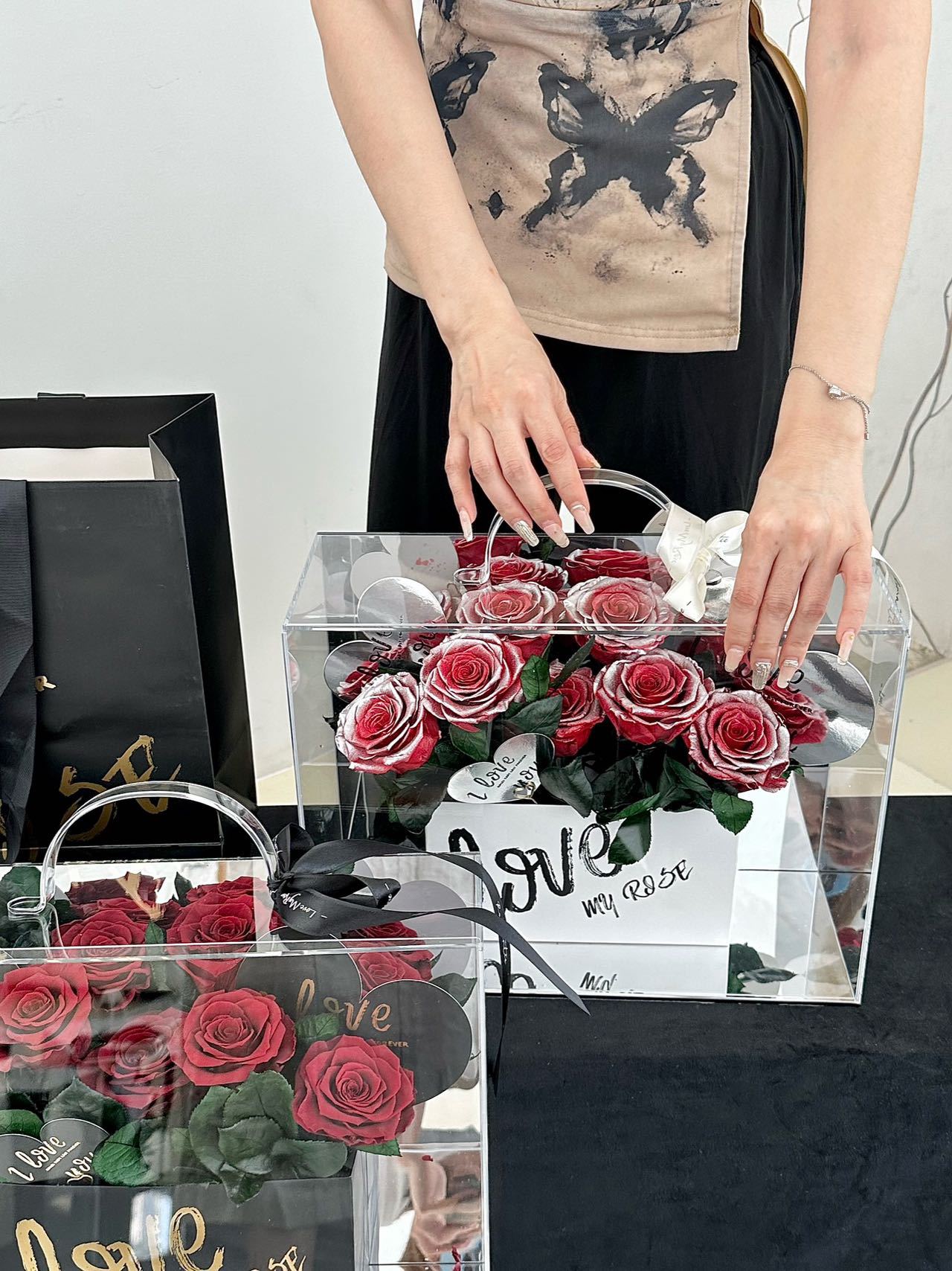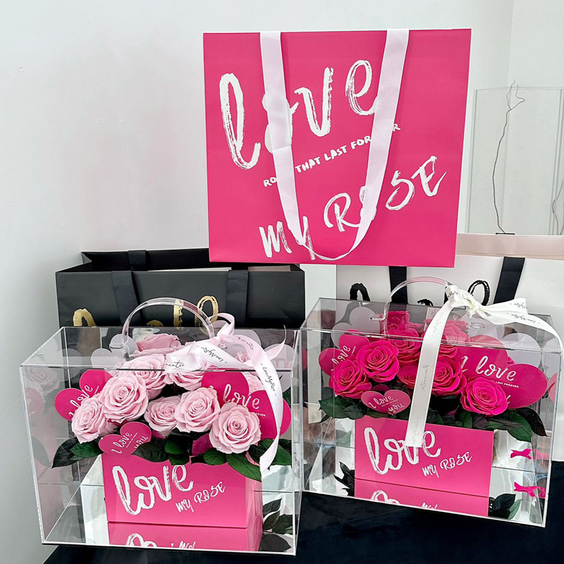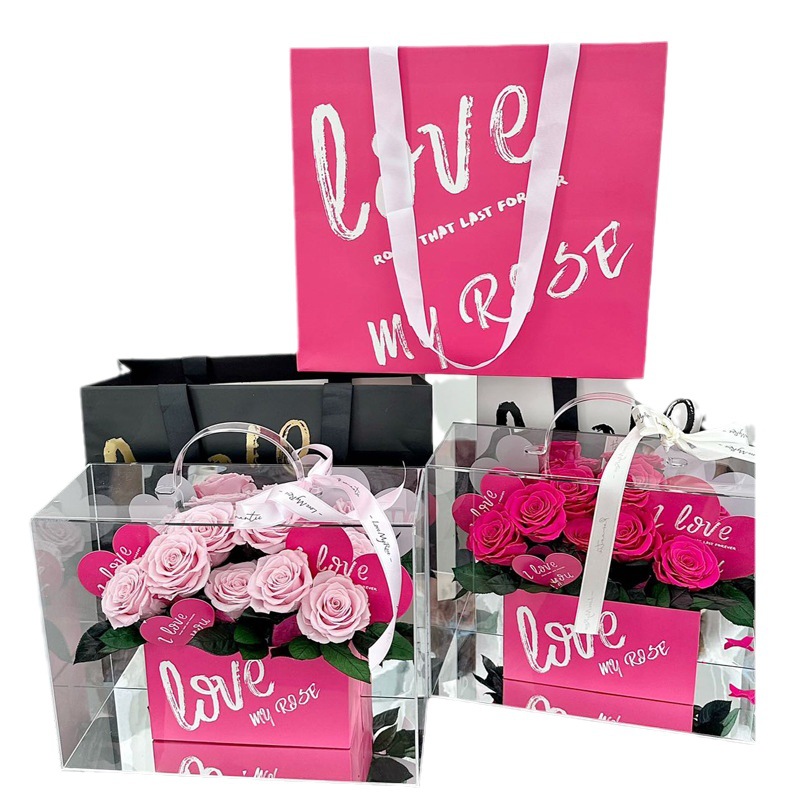 Qixi Preserved Fresh Flower Portable Rose Box Valentine's Day Gift for Girlfriend Confession Proposal Dried Flowers Bouquet Wholesale 中文版