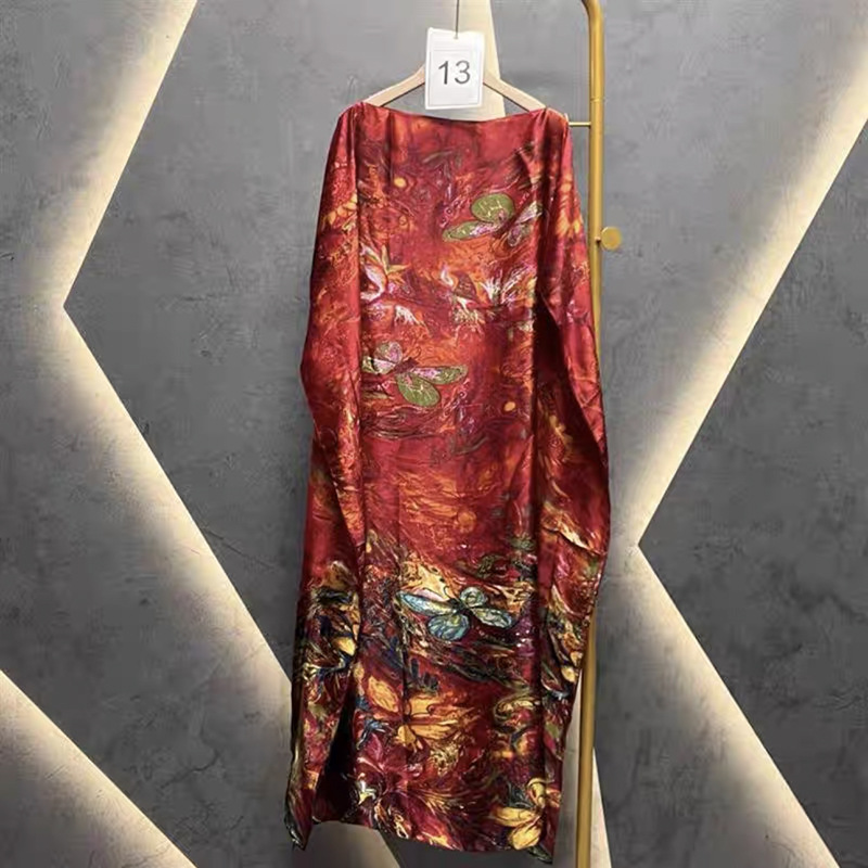 A dress made of uniform size silk scarves