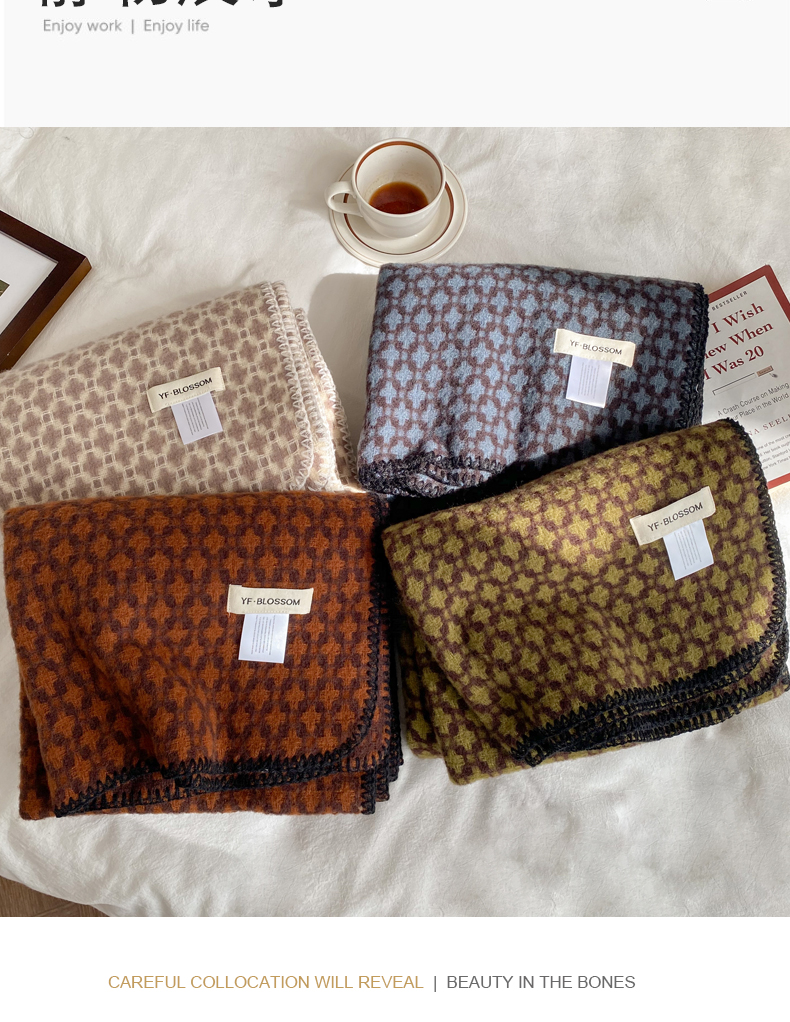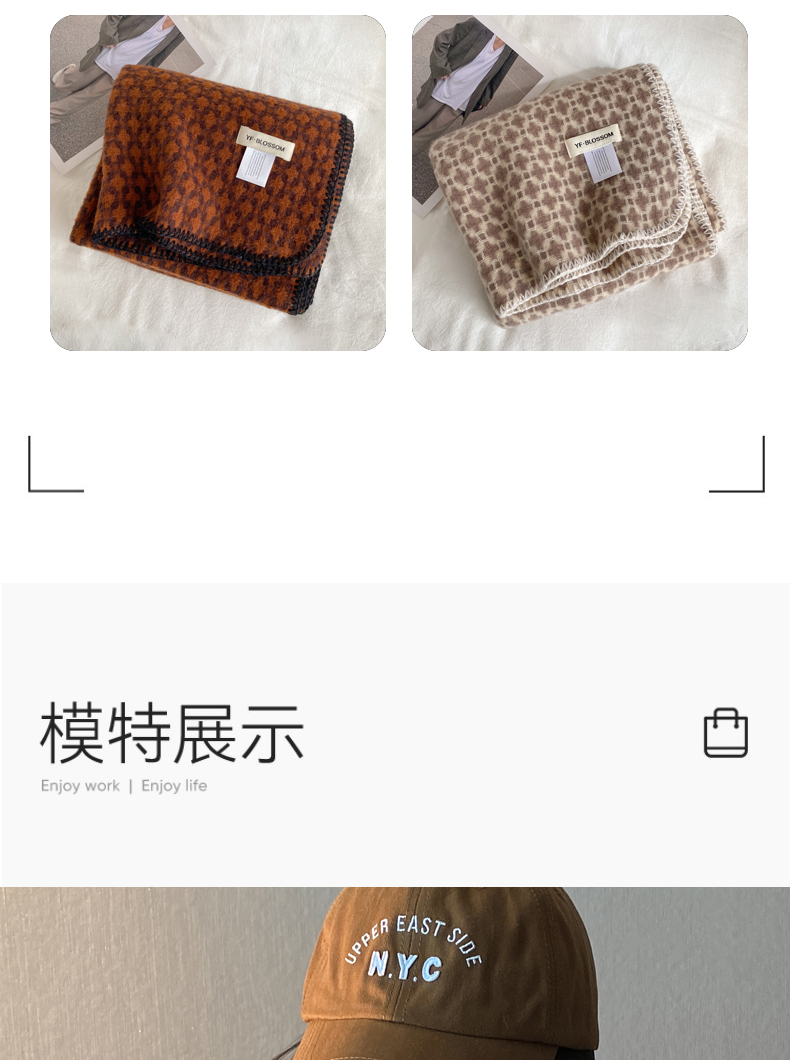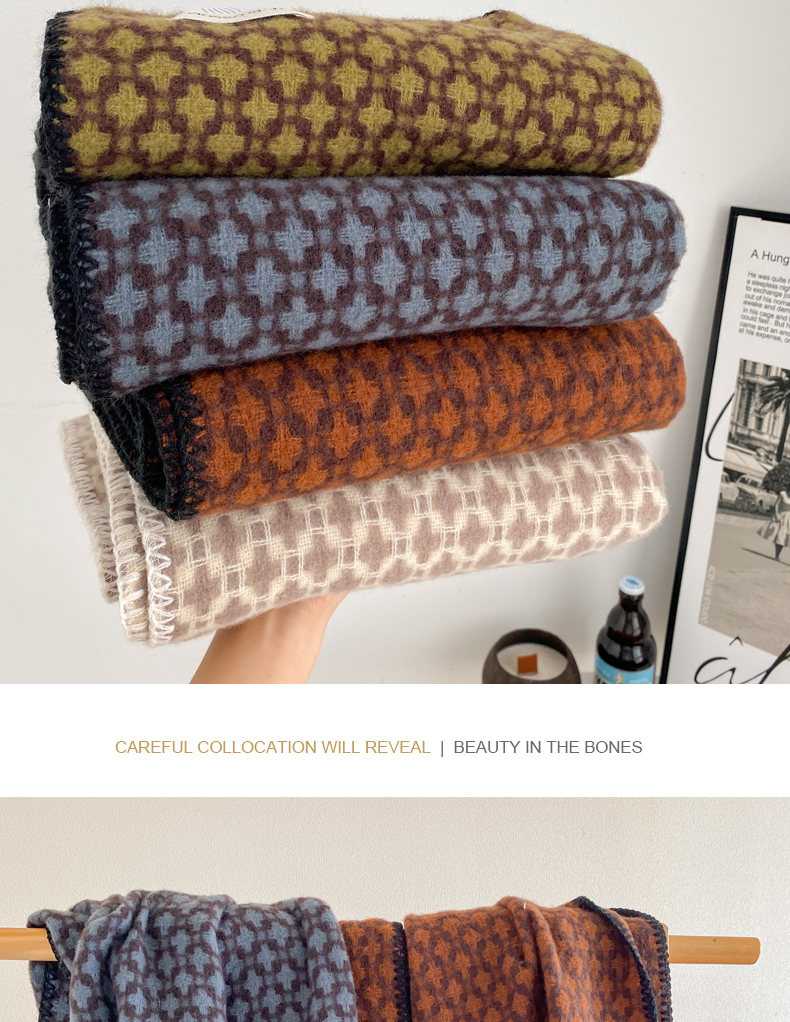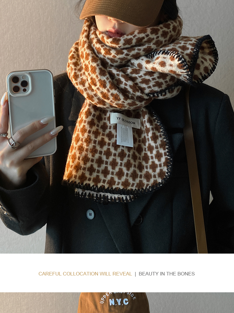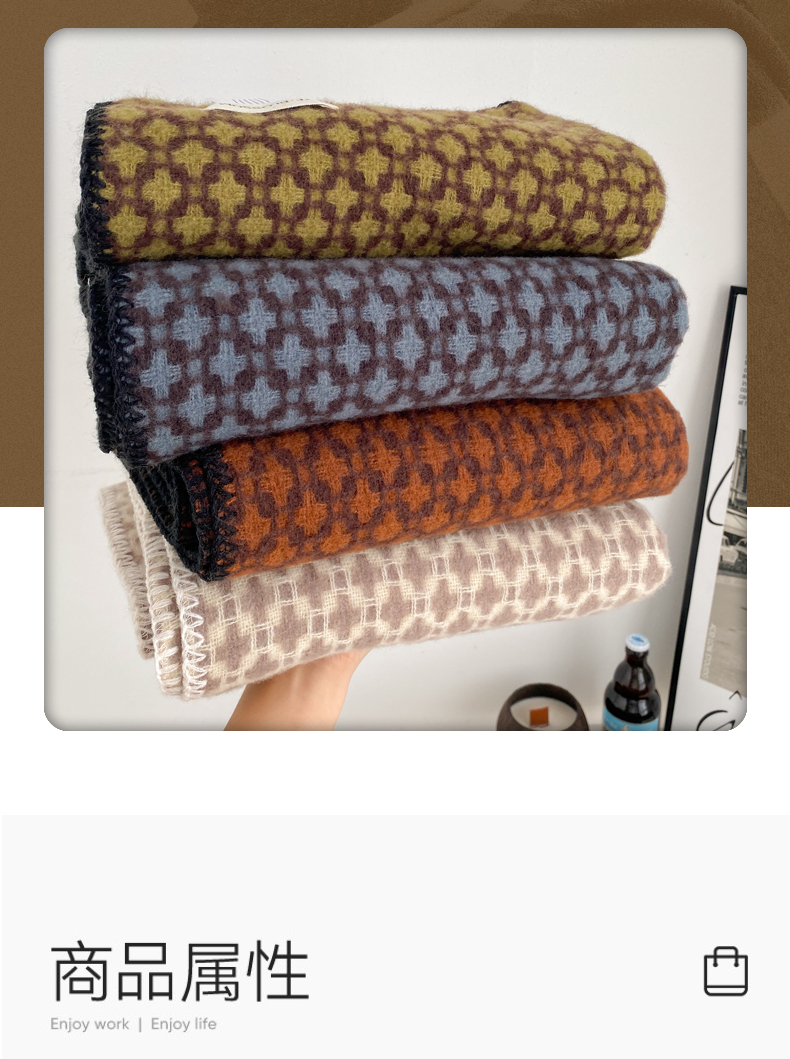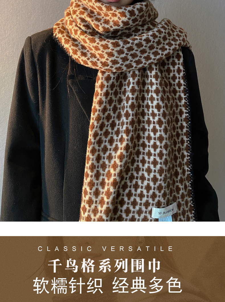 wholesale cross-border e-commerce supply vintage scarf new cashmere-like hepburn style shawl black and white plaid scarf 中文版