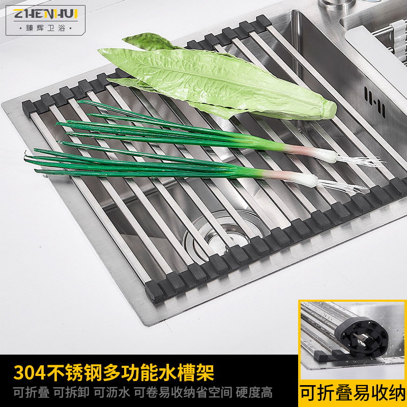 silicone drainboard water filter rack 304 stainless steel folding kitchen storage rack sink tableware rack 中文版