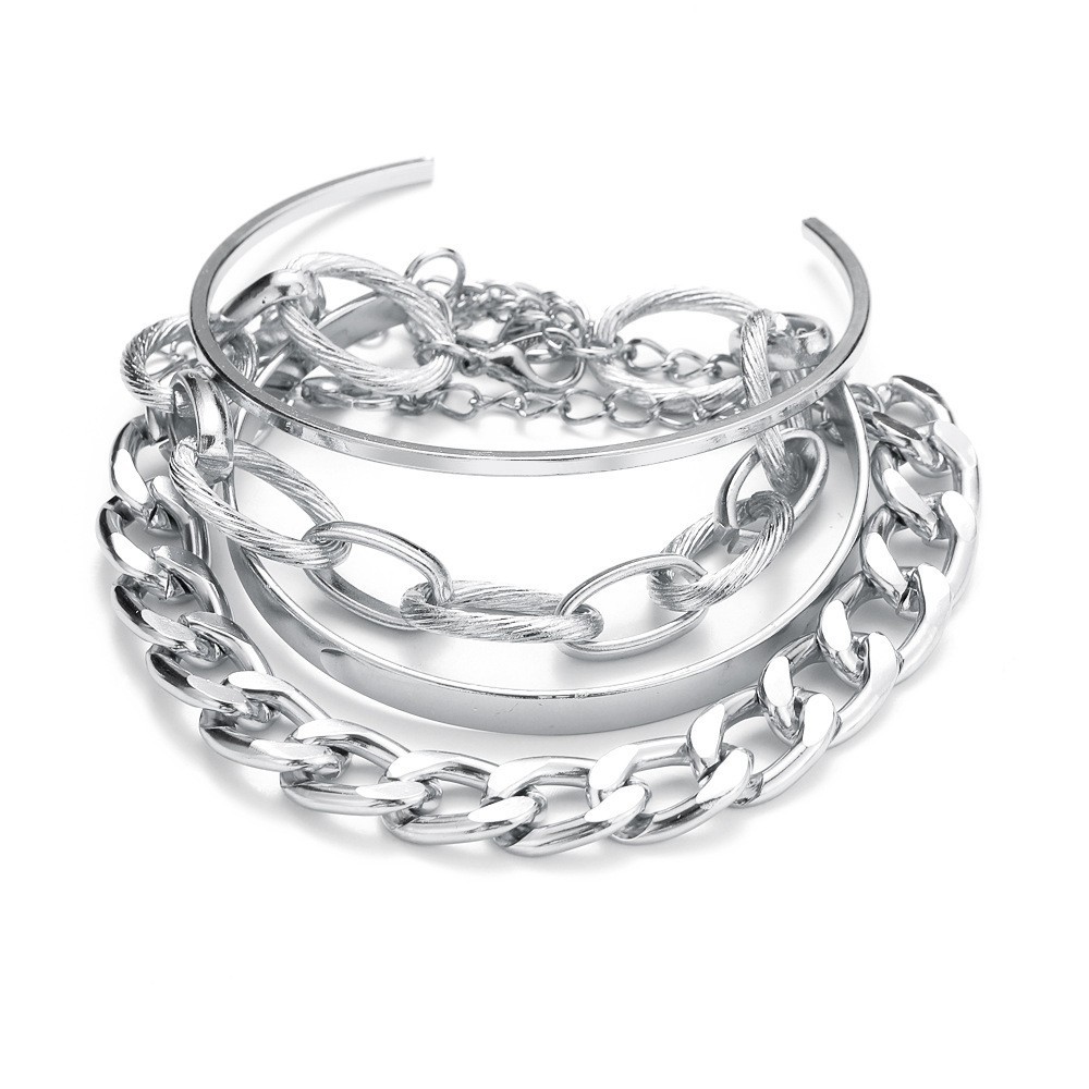 Hot Metal Bracelet Set Europe and America Personality Thick Chain Bracelet Glossy Multi-Layer Open-Ended Bracelet
