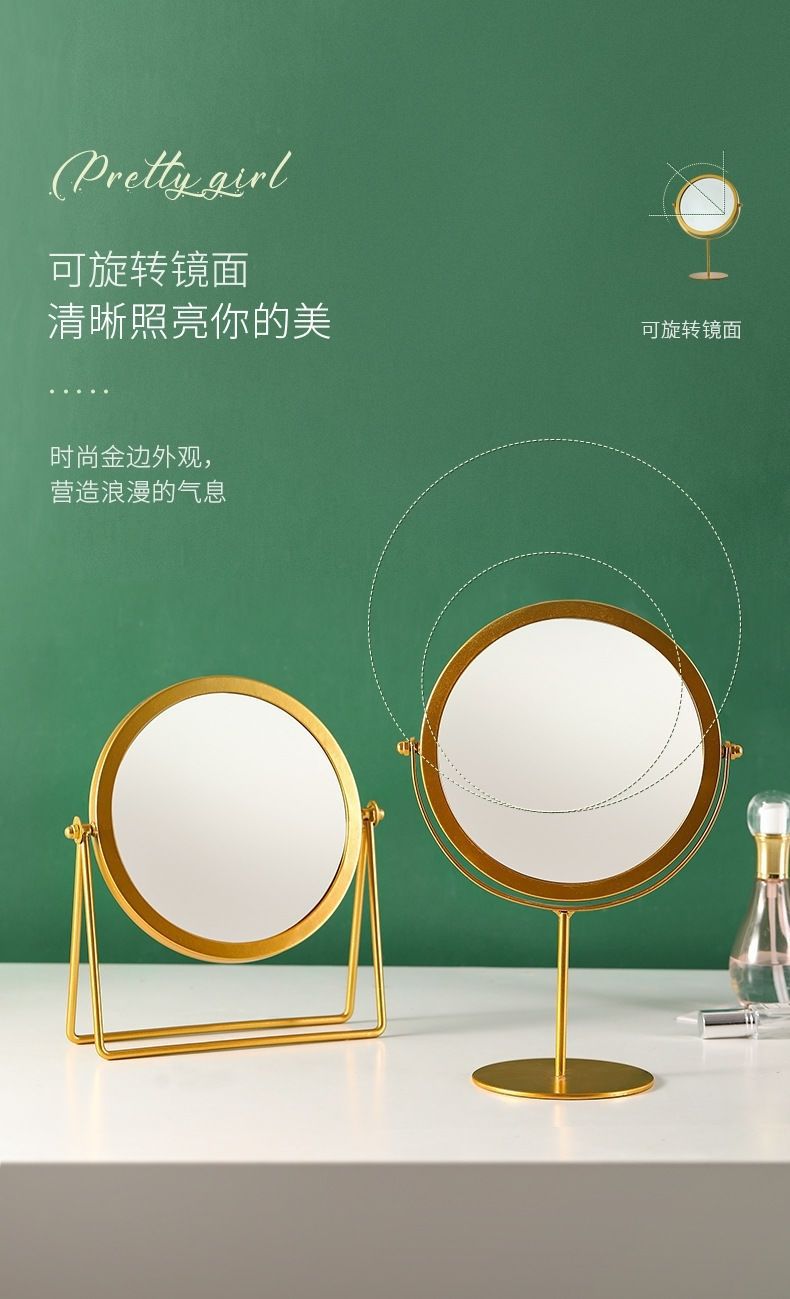 cosmetic mirror desktop home metal iron art student dormitory desktop can stand small mirror ins style dressing mirror 中文版