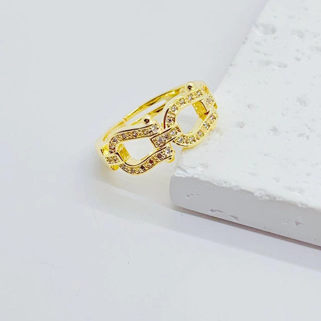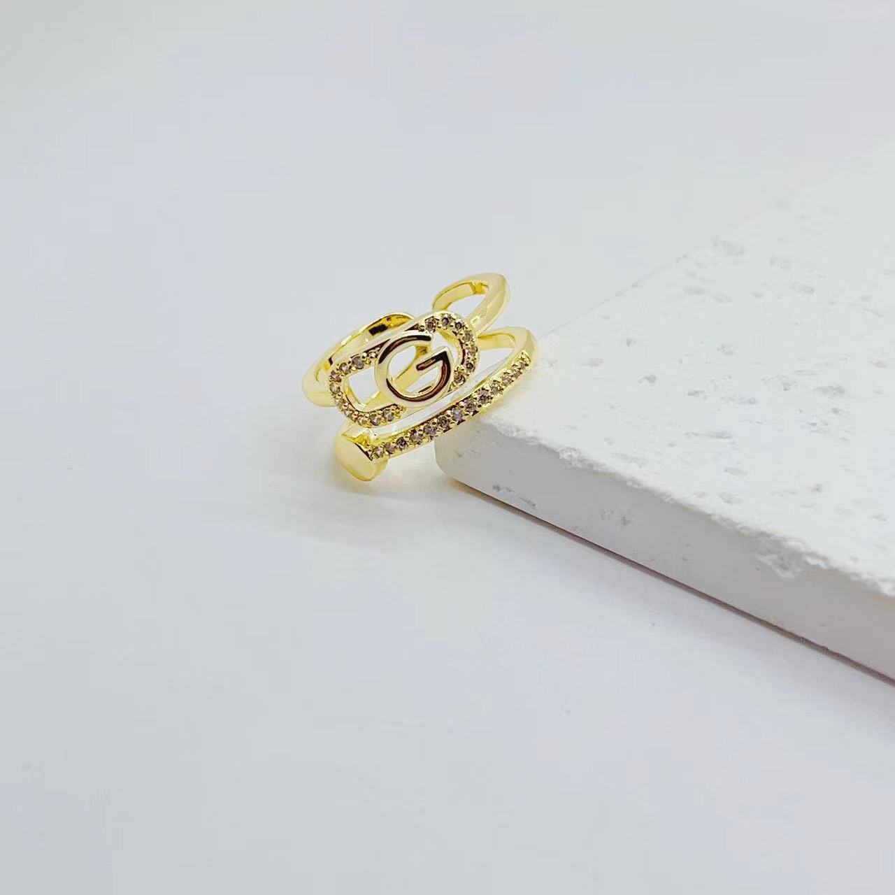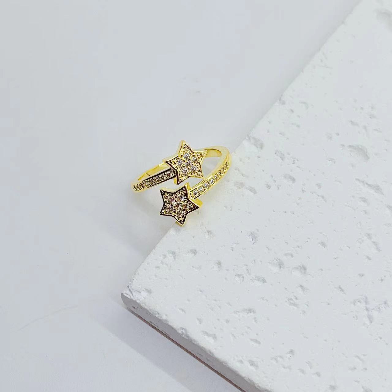 europe and america cross border internet hot new copper plated real gold micro inlaid geometric creative and slightly luxury water drop heart-shaped open ring female 中文版