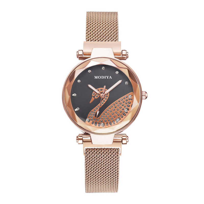 New Diamond-Embedded Milan Strap Swan Watch Lazy Watch Magnetic Suction Magnet Women's Watch TikTok Hot 中文版