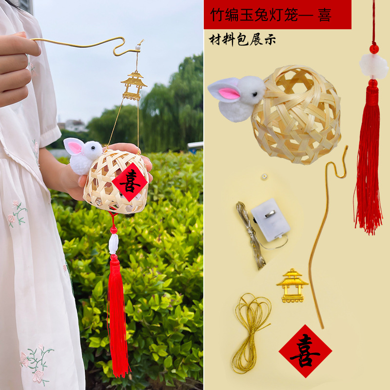 simple rabbit round bamboo lantern-mid-autumn festival material package