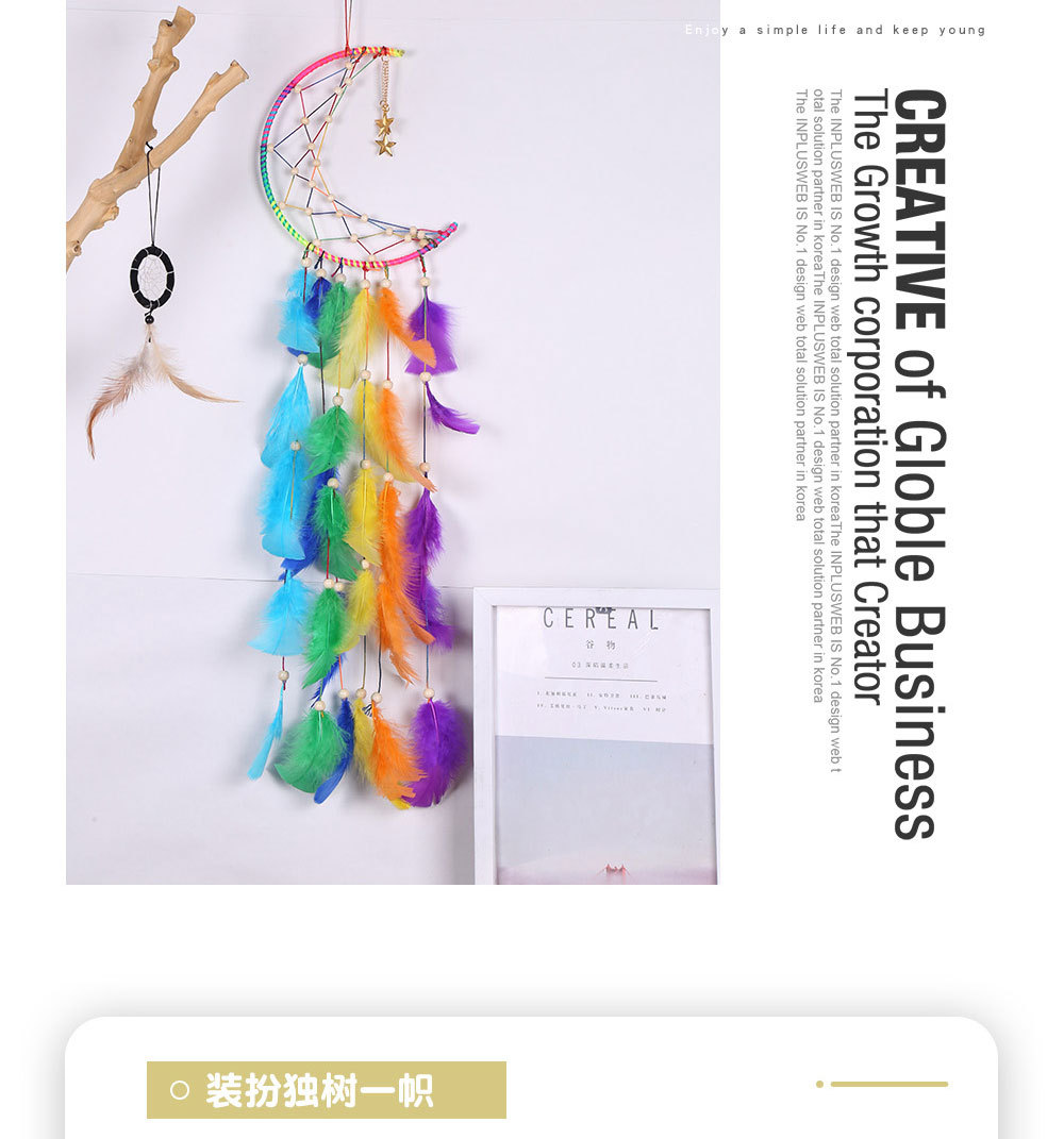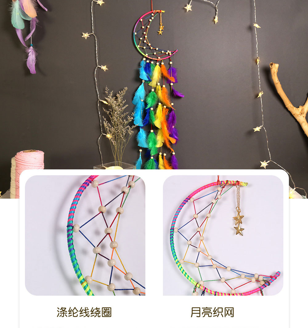 Moon Dreamcatcher Decorative Pendant Colorful Handmade Woven Colorful Dreamcatcher Home Homestay Decorative Hanging 中文版