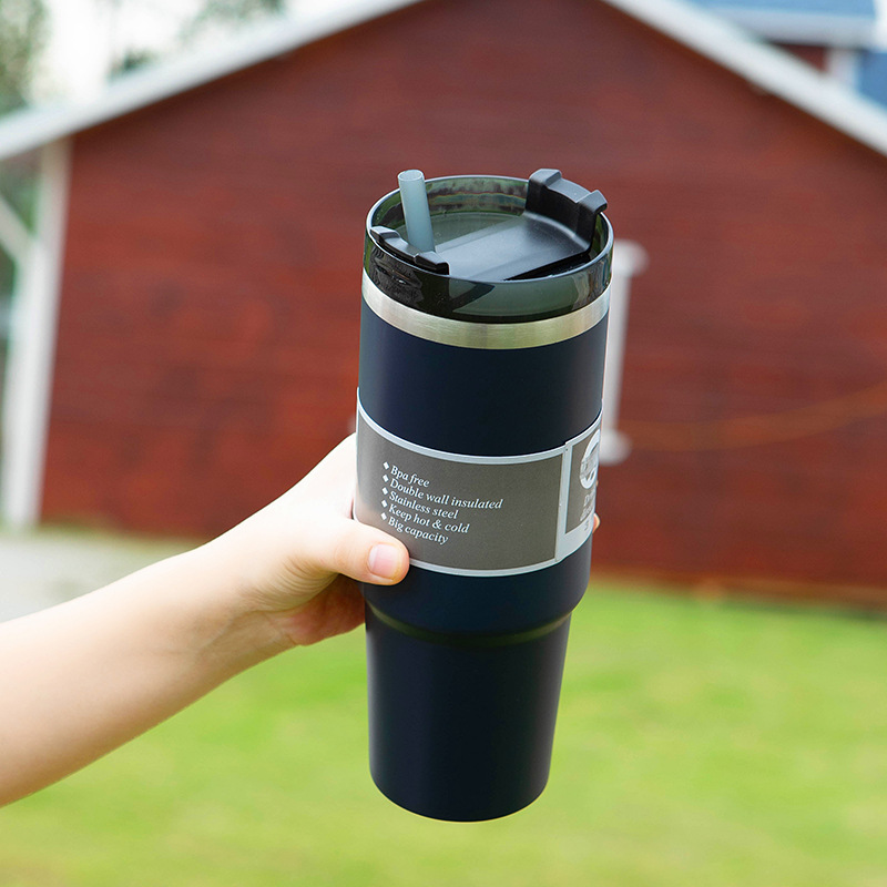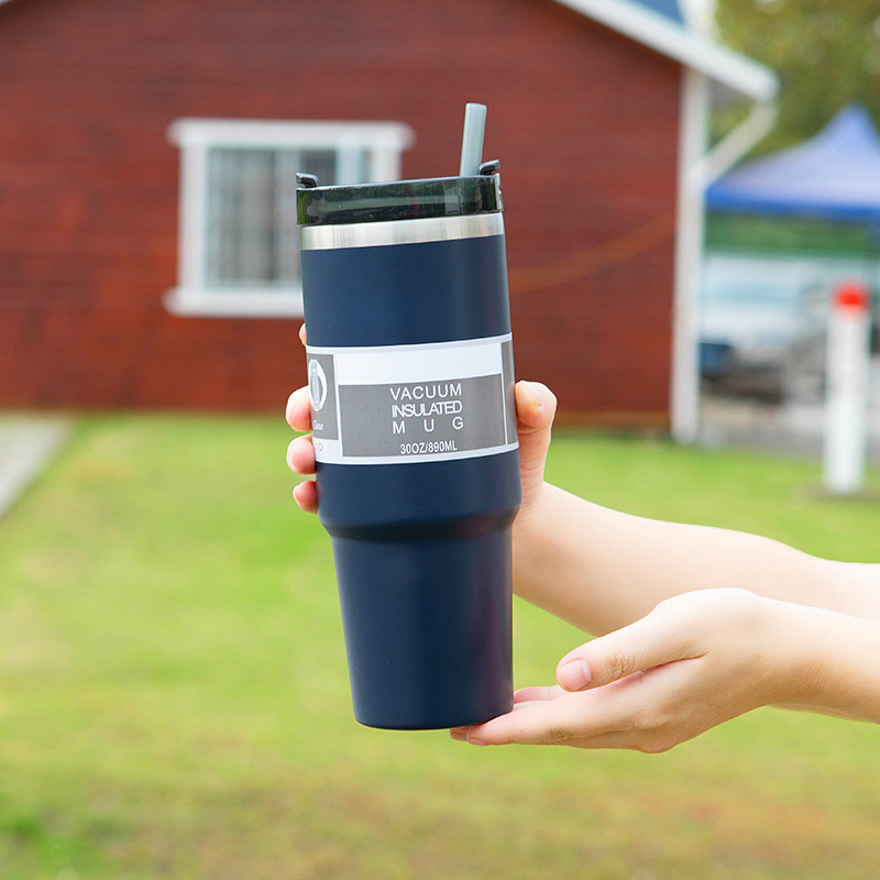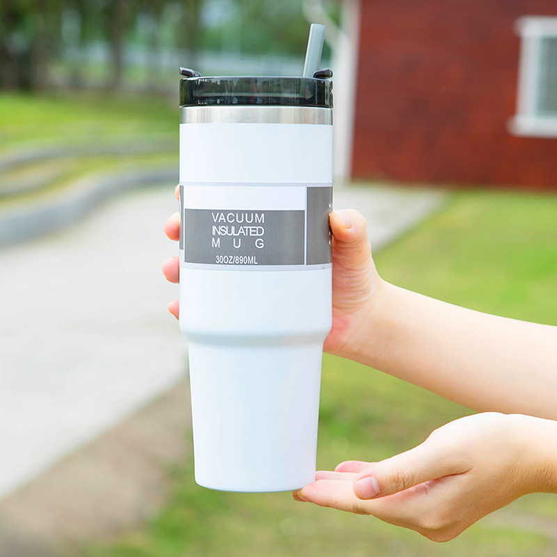 Cross-Border 304 Stainless Steel Travel Cup Outdoor Portable Large Capacity Cup with Straw Large Ice Cup Heat and Cold Insulation Beer Steins