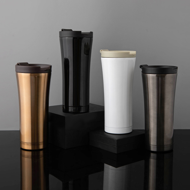 304 Stainless Steel Coffee Cup Double-Layer Vacuum Thermos Cup Leisure Personal Gift Cup with Straw Office Advertising Cup