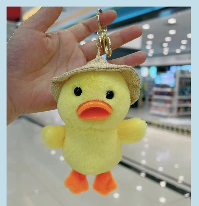Online Influencer Duck Doll Pendant Straw Hat Cheering Duck Schoolbag Pendant Psyduck Keychain Plush Doll Doll Puppet