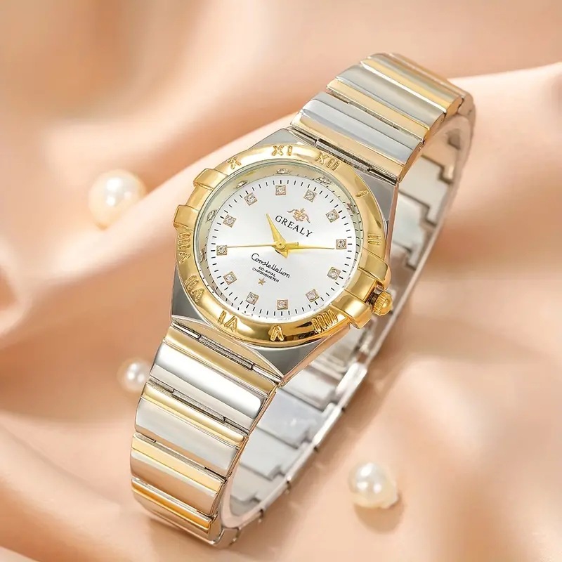 Cross-Border Hot Sale Casual round Pointer Women's Quartz Watch Rhinestone Ornament Dial Waterproof Fashion Women's Watch
