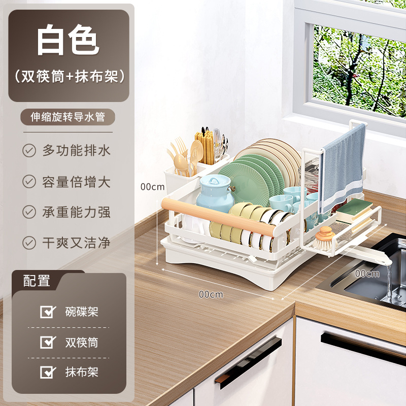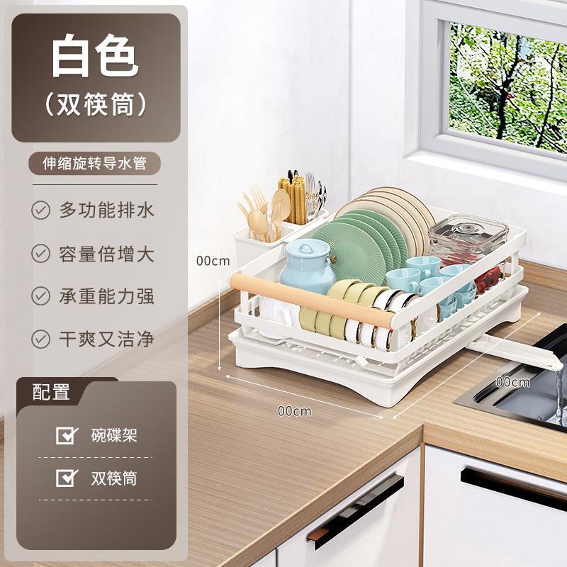 white * wooden handle single-layer dish rack + double chopstick canister + rag rack