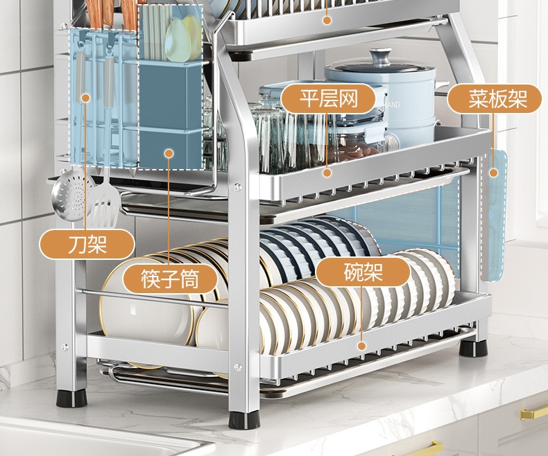 natural color * three-layer full set (bold stainless steel) * with knife chopstick holder + chopping board rack