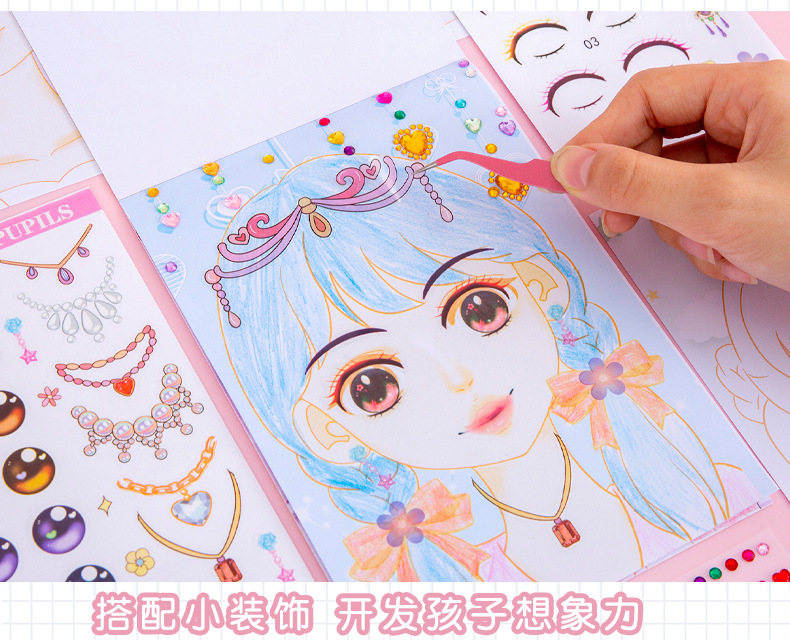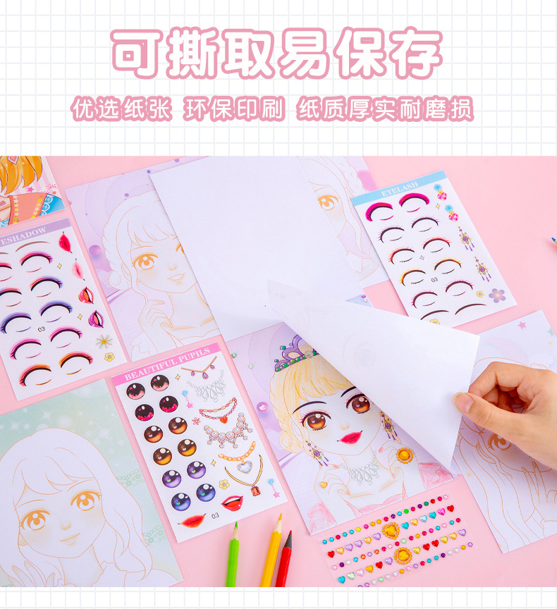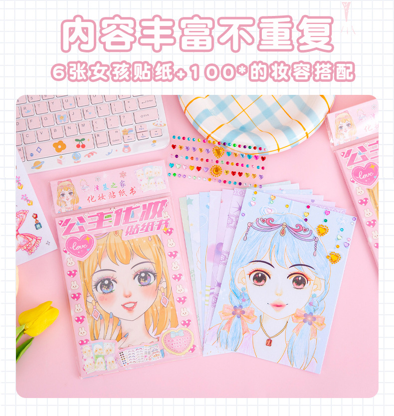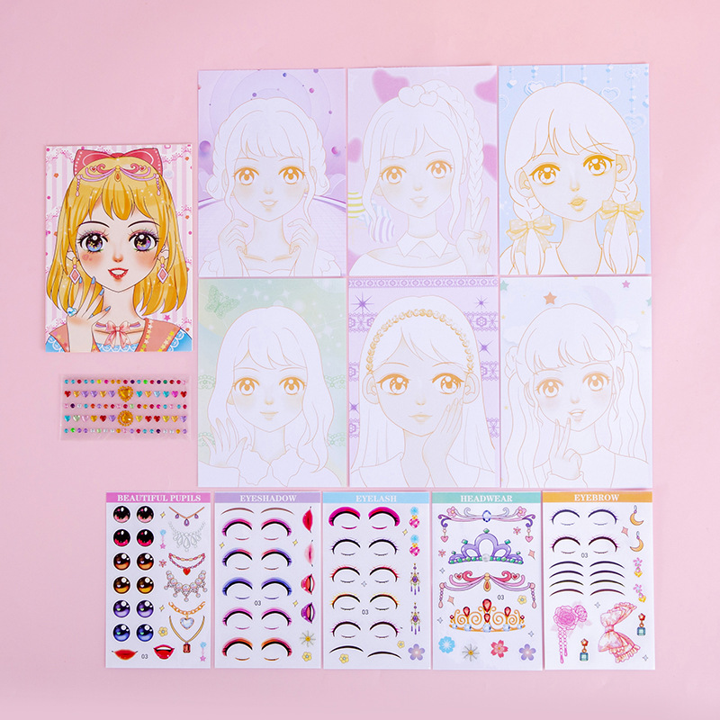 Contains: 6 girl's postcards + 5 makeup stickers + 1 diamond sticker